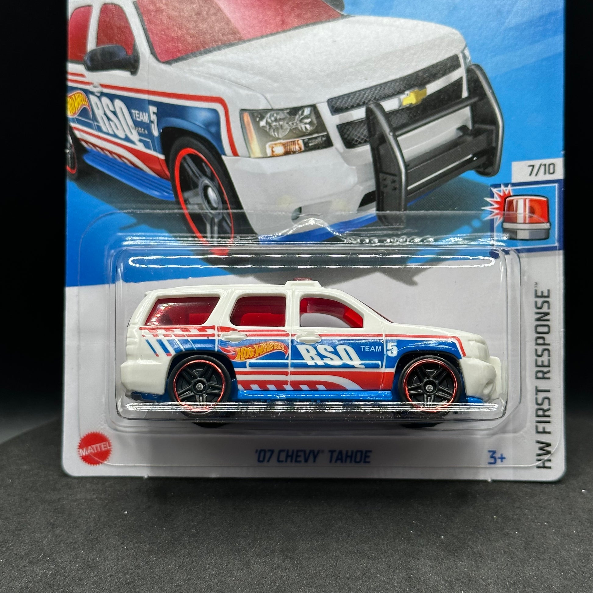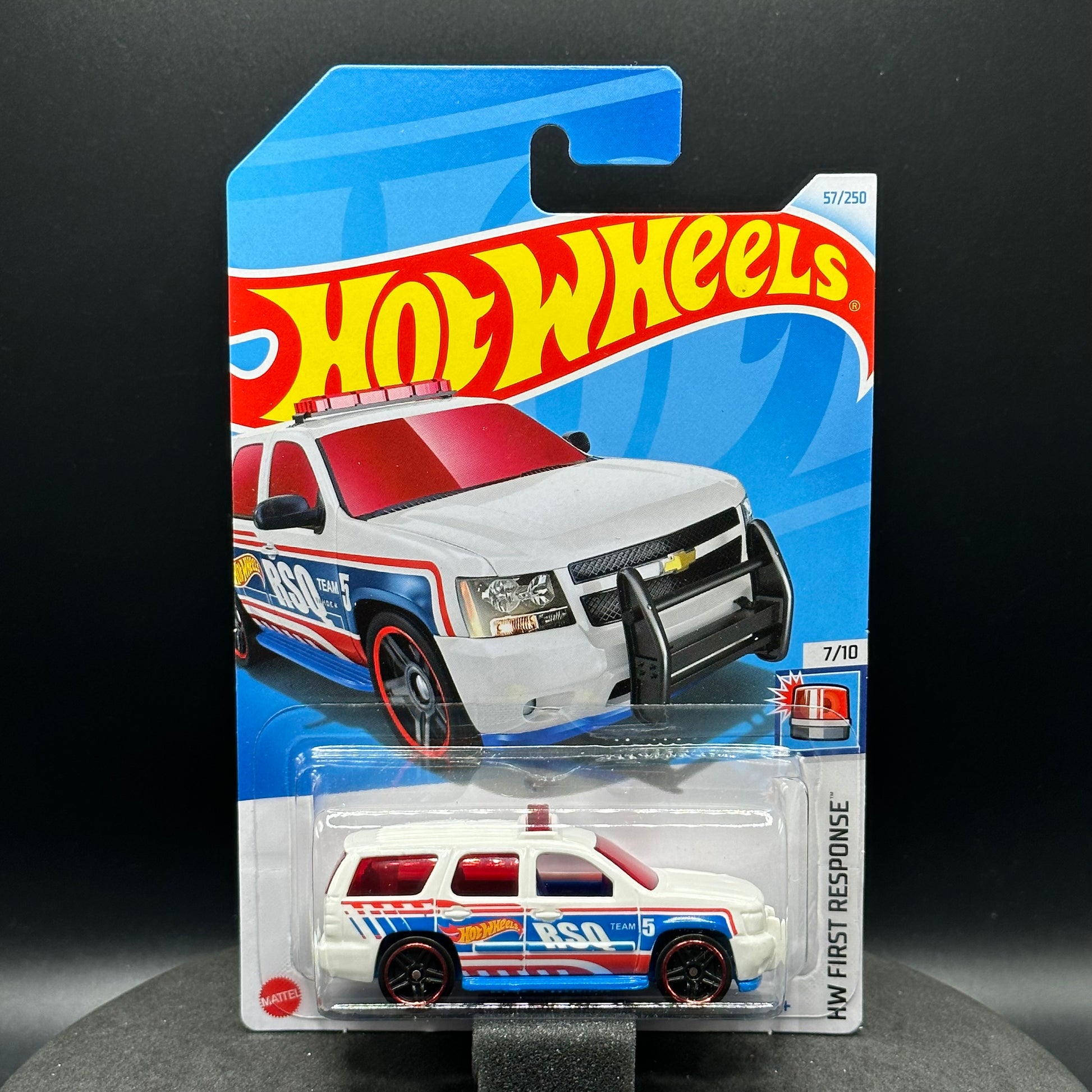 Hot Wheels ‘07 Chevy Tahoe in white. There are multiple available and you might not get the exact one in the picture. They are all in good condition but may have slightly soft corners or lightly dented edges. All Hot Wheels will be individually wrapped in bubble wrap and shipped in a box for added protection.