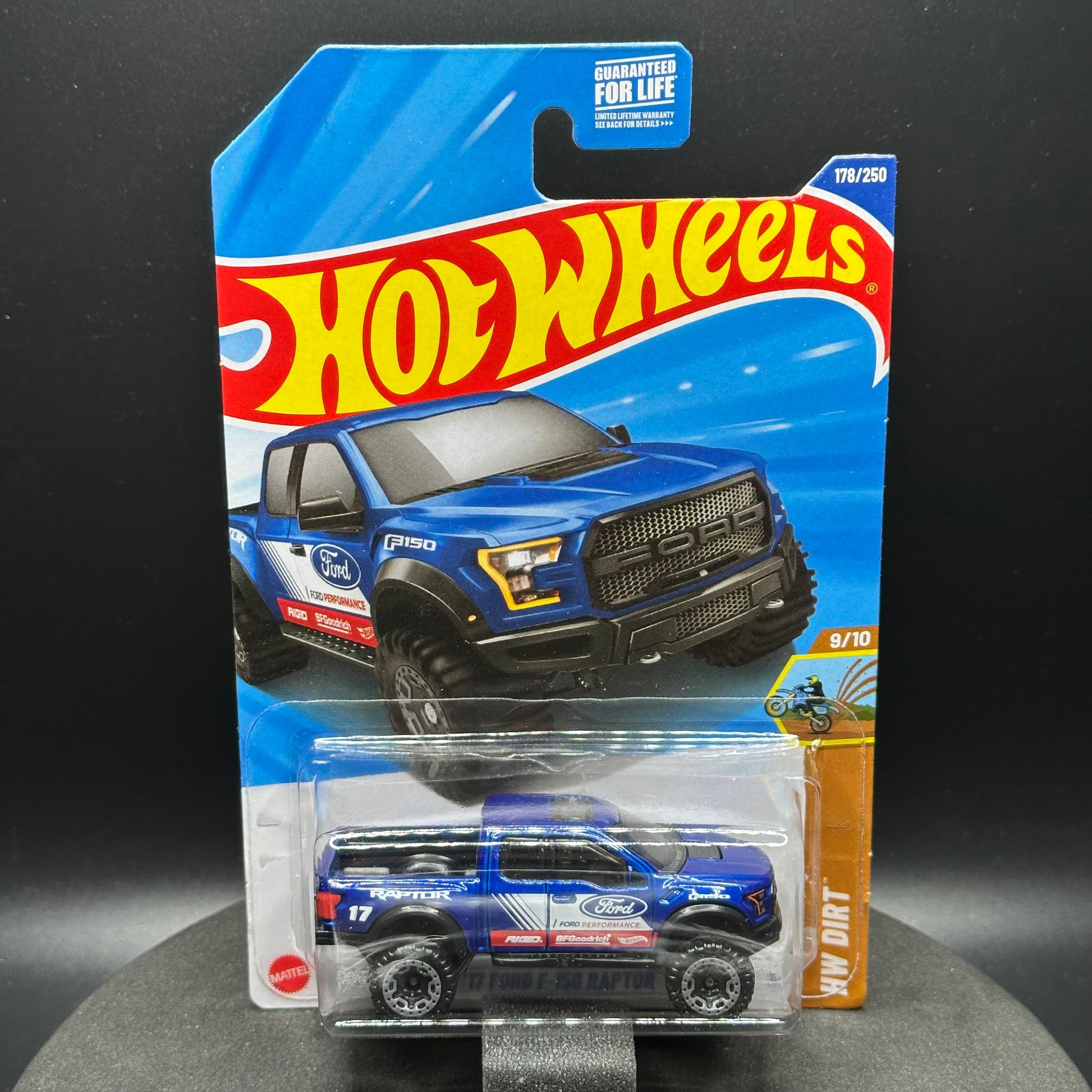 Hot Wheels ‘17 Ford F150 Raptor in blue. There are multiple available and you might not get the exact one in the picture. They are all in good condition but may have slightly soft corners or lightly dented edges. All Hot Wheels will be individually wrapped in bubble wrap and shipped in a box for added protection.