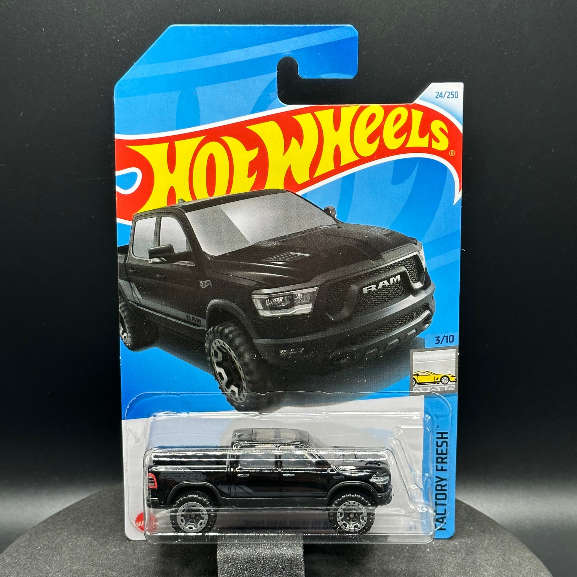 Hot Wheels 2020 Ram 1500 Rebel in black. There are multiple available and you might not get the exact one in the picture. They are all in good condition but may have slightly soft corners. All Hot Wheels will be wrapped in bubble wrap and shipped in a box for added protection.
