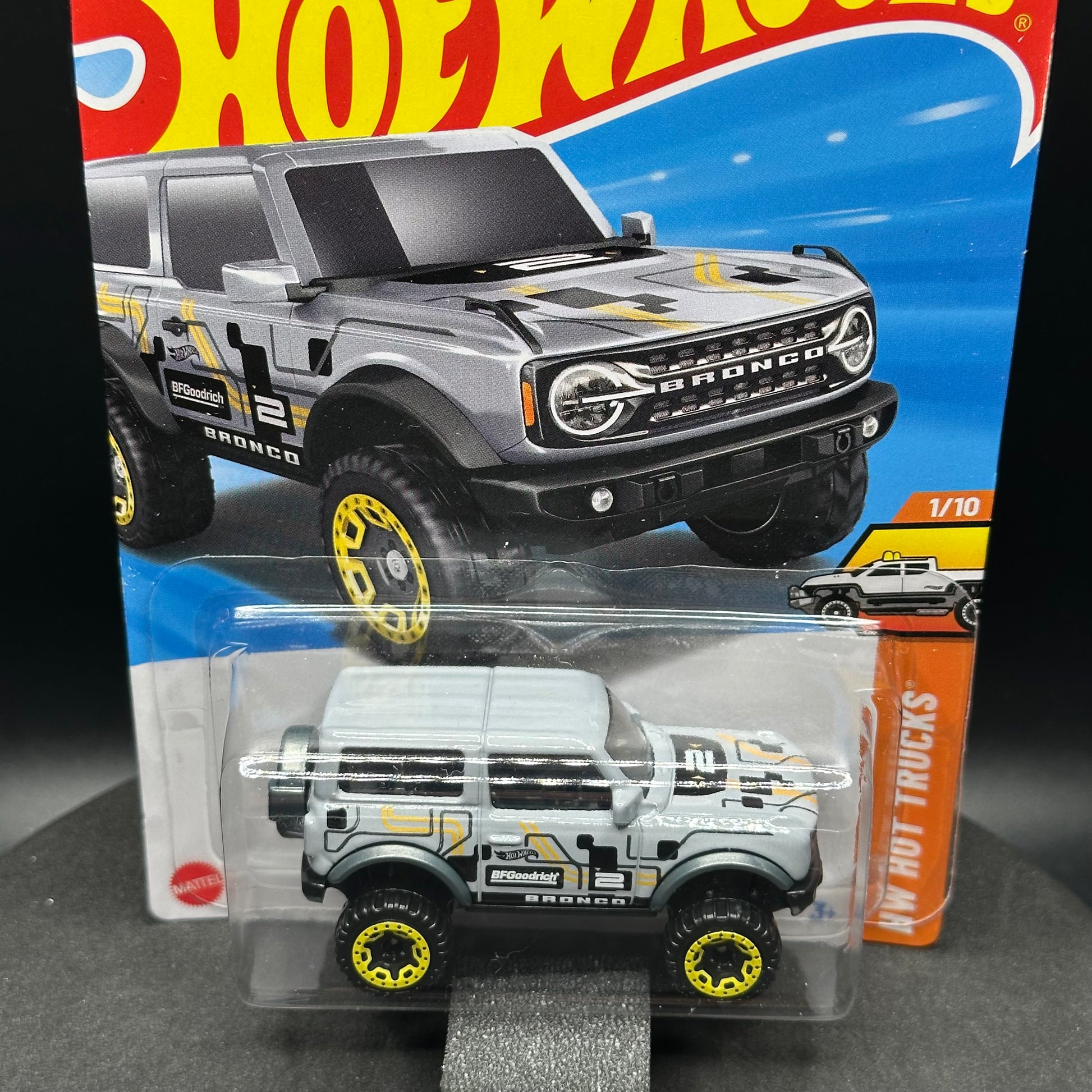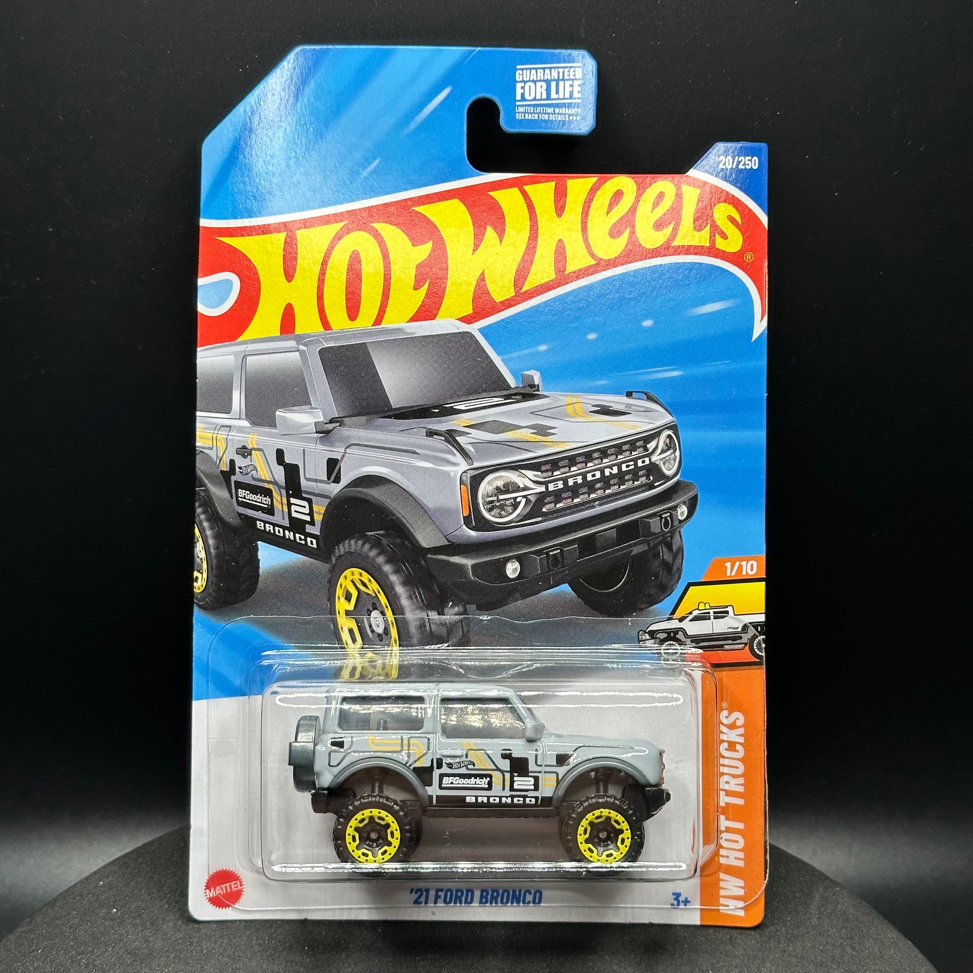 Hot Wheels ‘21 Ford Bronco in gray. There are multiple available and you might not get the exact one in the picture. They are all in good condition but may have slightly soft corners or lightly dented edges. All Hot Wheels will be individually wrapped in bubble wrap and shipped in a box for added protection.