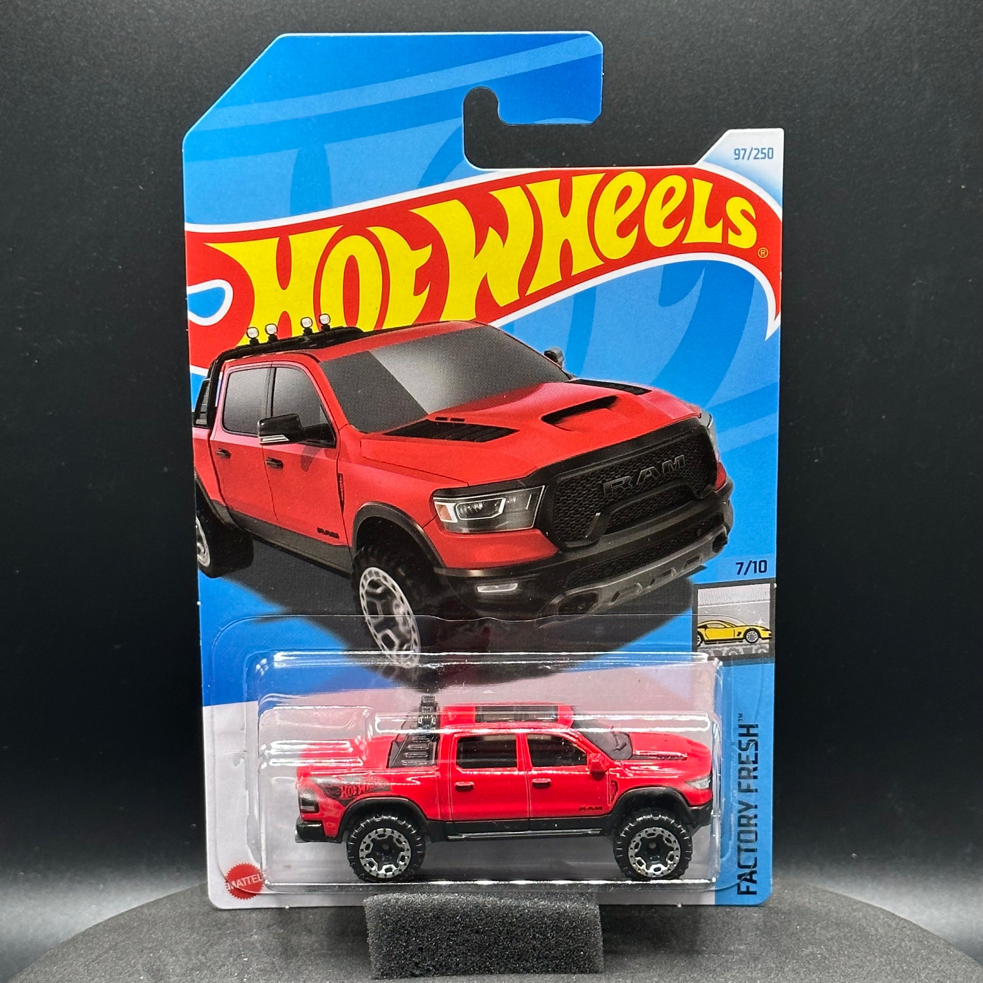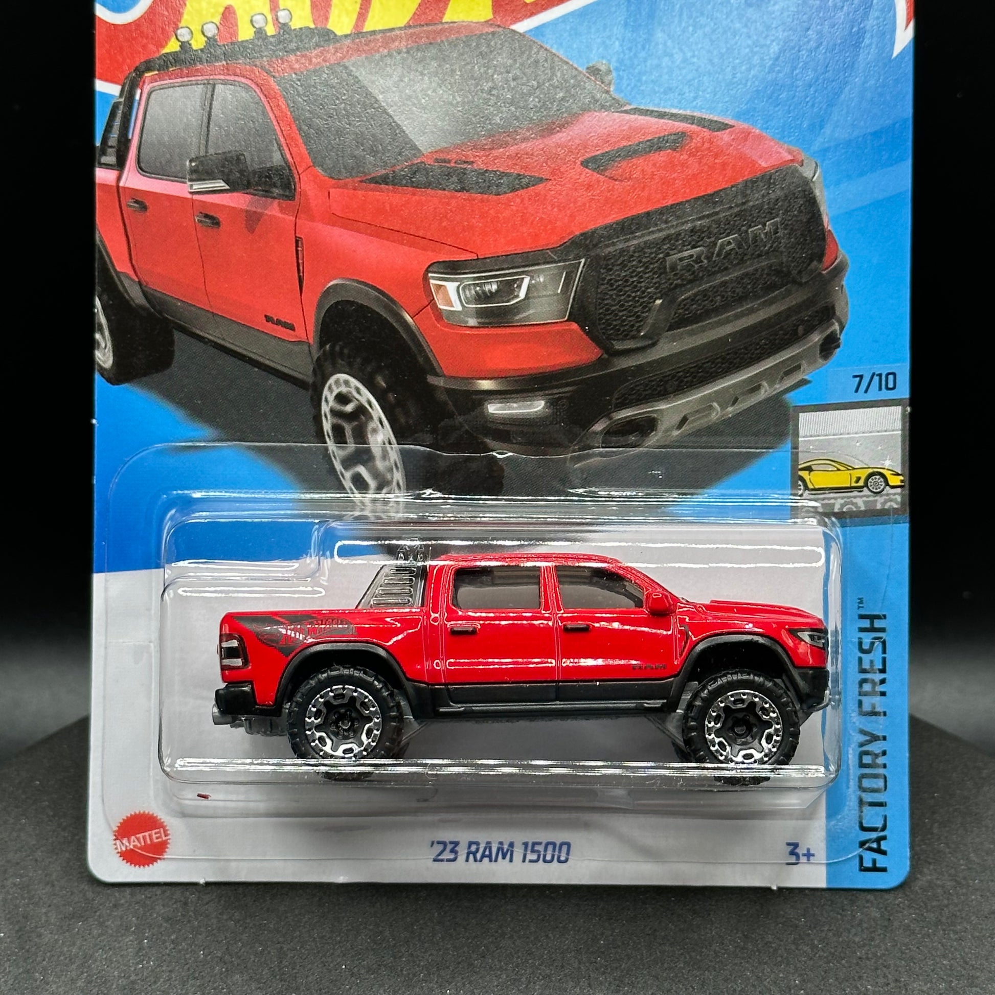 Hot Wheels 2023 Ram 1500 in red. There are multiple available and you might not get the exact one in the picture. They are all in good condition but may have a slightly soft corner or slight bend on the hook. All Hot Wheels will be wrapped in bubble wrap and shipped in a box for added protection.