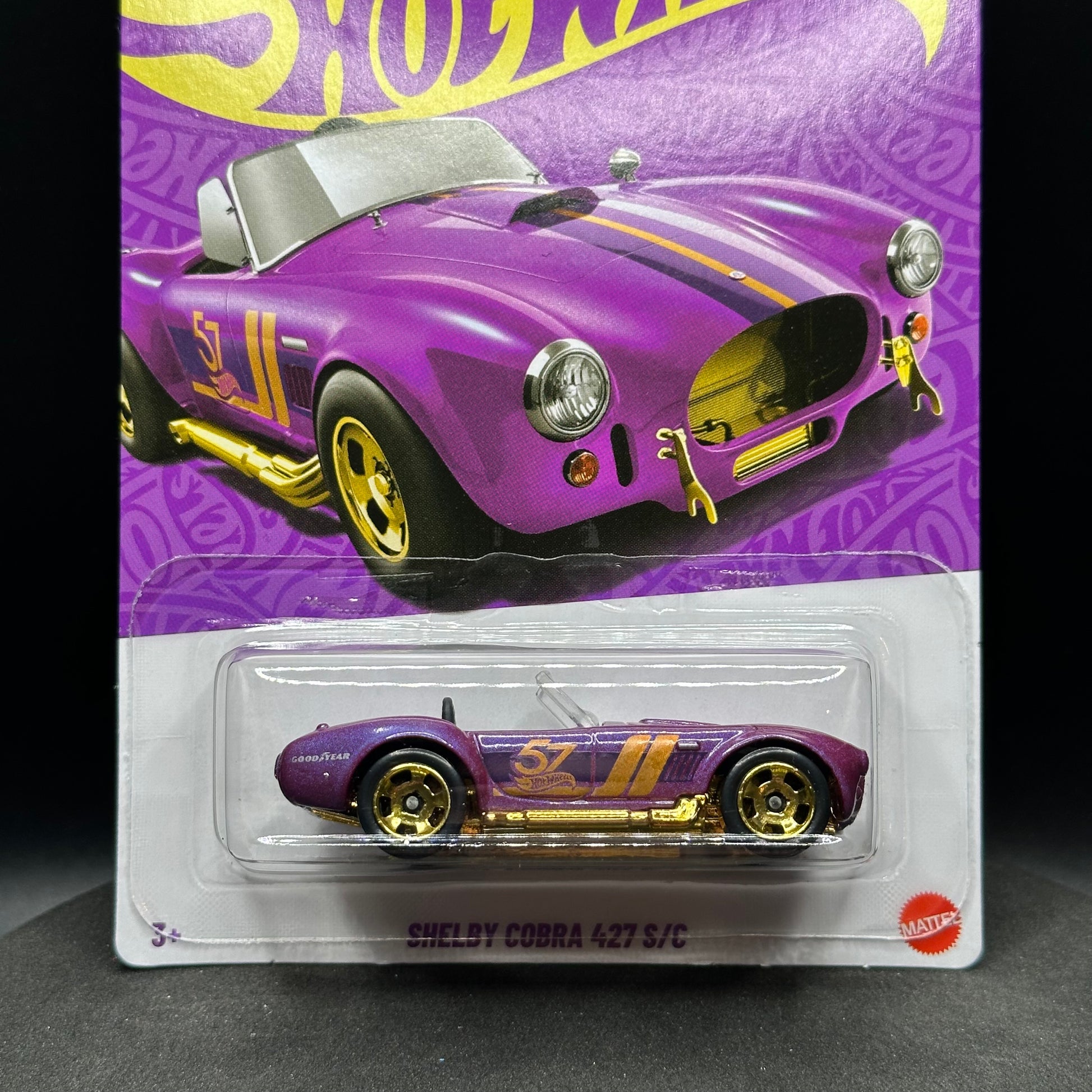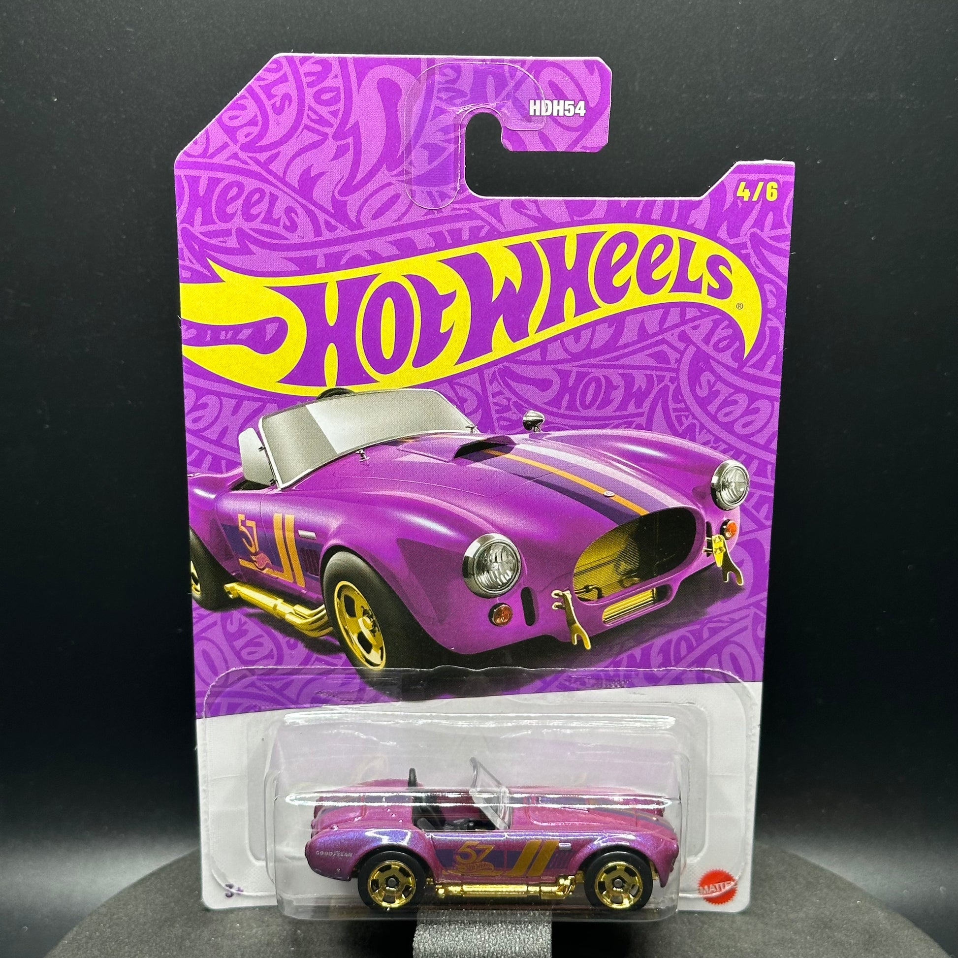 Hot Wheels 57th Anniversary Shelby Cobra 427 S/C in purple. There are multiple available and you might not get the exact one in the picture. They are all in good condition but may have slightly soft corners or lightly dented edges. All Hot Wheels will be individually wrapped in bubble wrap and shipped in a box for added protection.