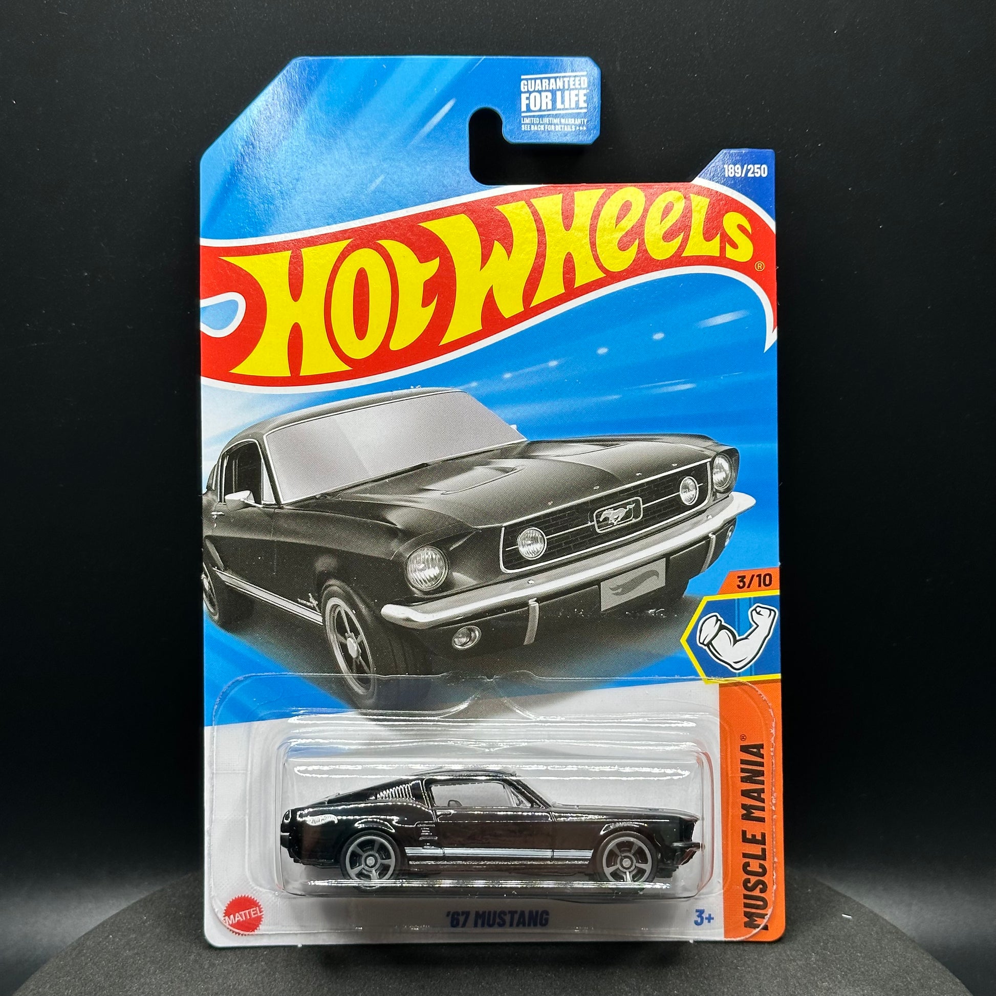 Hot Wheels ‘67 Mustang in black. There are multiple available and you might not get the exact one in the picture. They are all in good condition but may have slightly soft corners or lightly dented edges. All Hot Wheels will be individually wrapped in bubble wrap and shipped in a box for added protection.