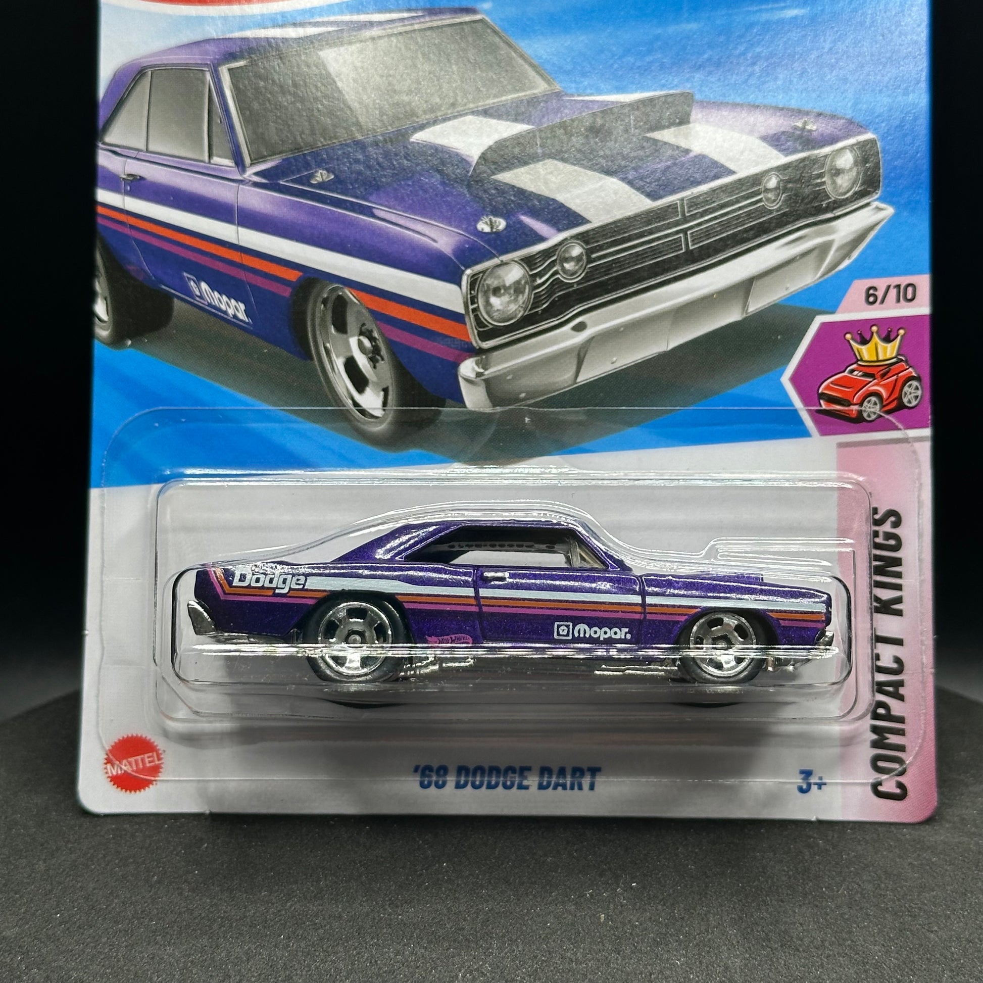 Hot Wheels ‘68 Dodge Dart in purple. There are multiple available and you might not get the exact one in the picture. They are all in good condition but may have slightly soft corners or lightly dented edges. All Hot Wheels will be individually wrapped in bubble wrap and shipped in a box for added protection.