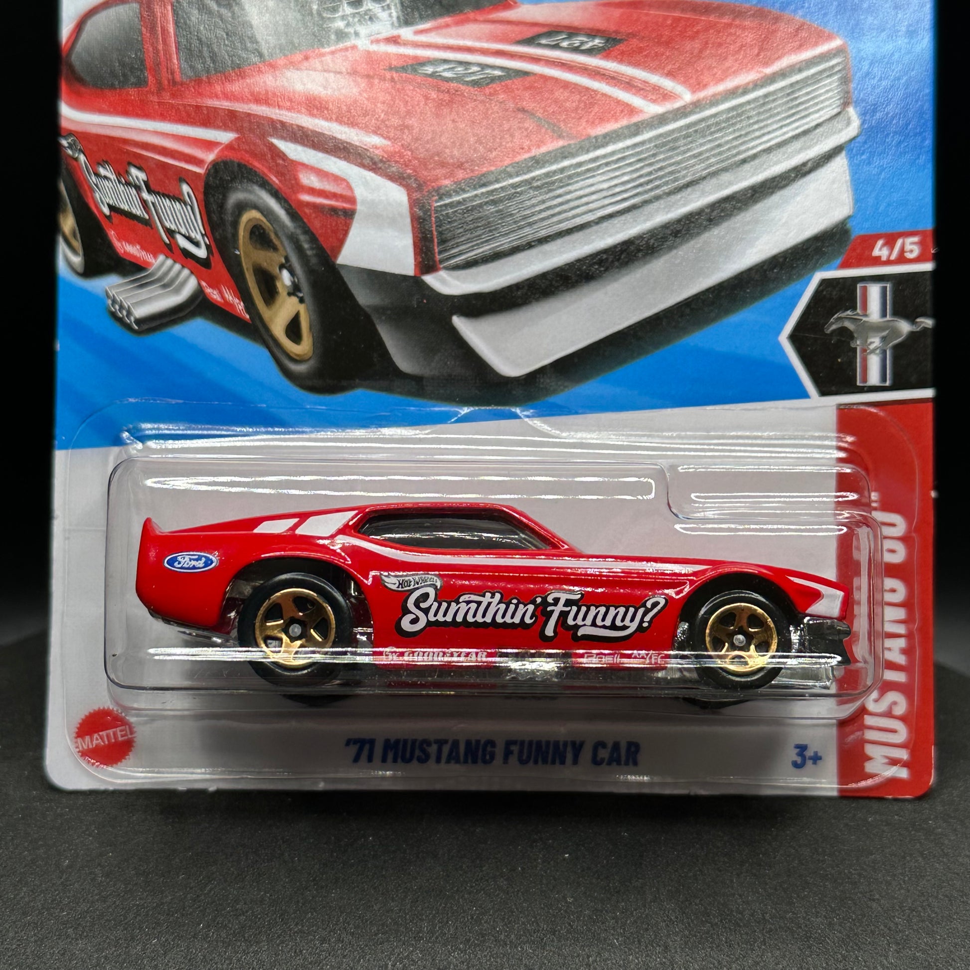 Hot Wheels ‘71 Mustang Funny Car in red. There are multiple available and you might not get the exact one in the picture. They are all in good condition but may have slightly soft corners or lightly dented edges. All Hot Wheels will be individually wrapped in bubble wrap and shipped in a box for added protection.