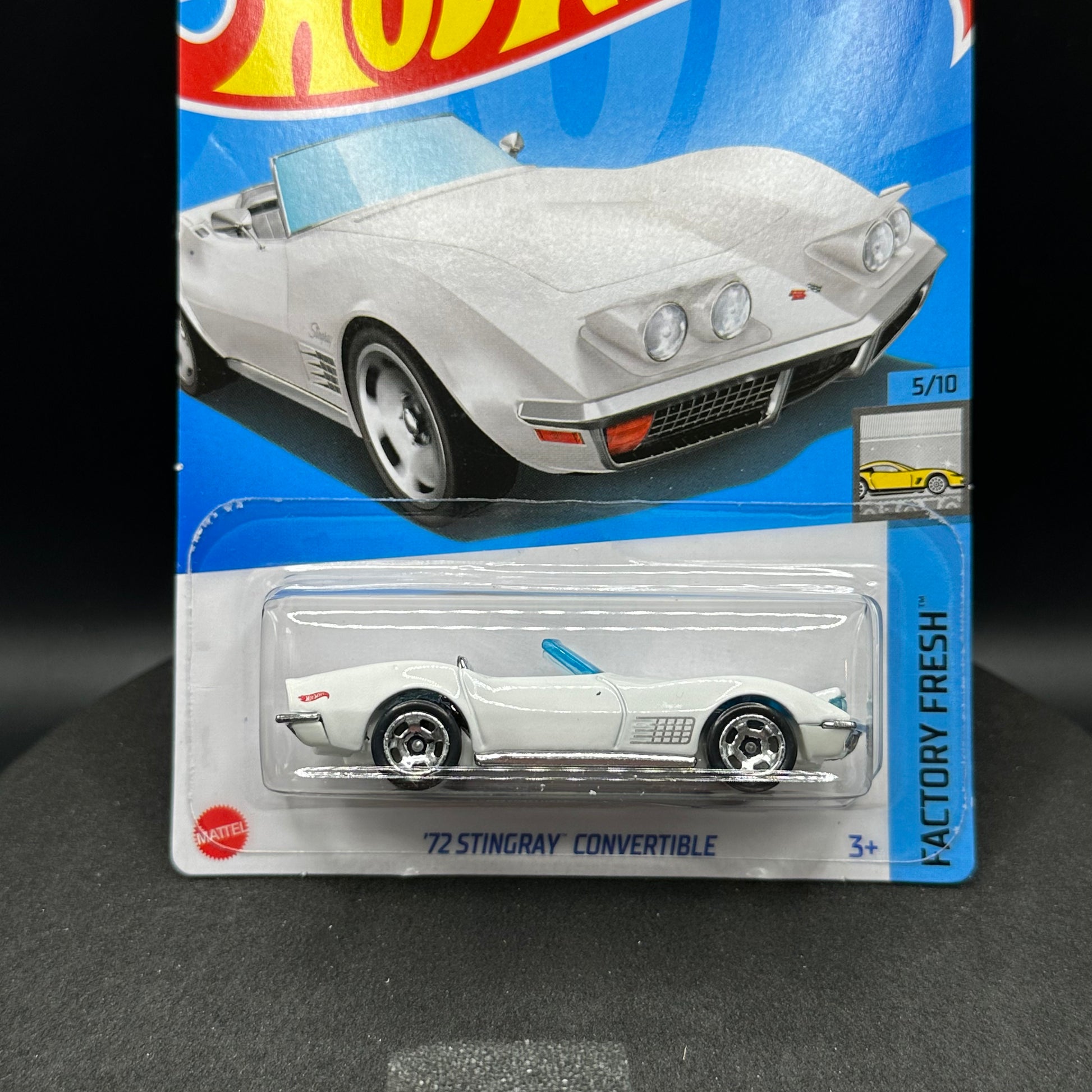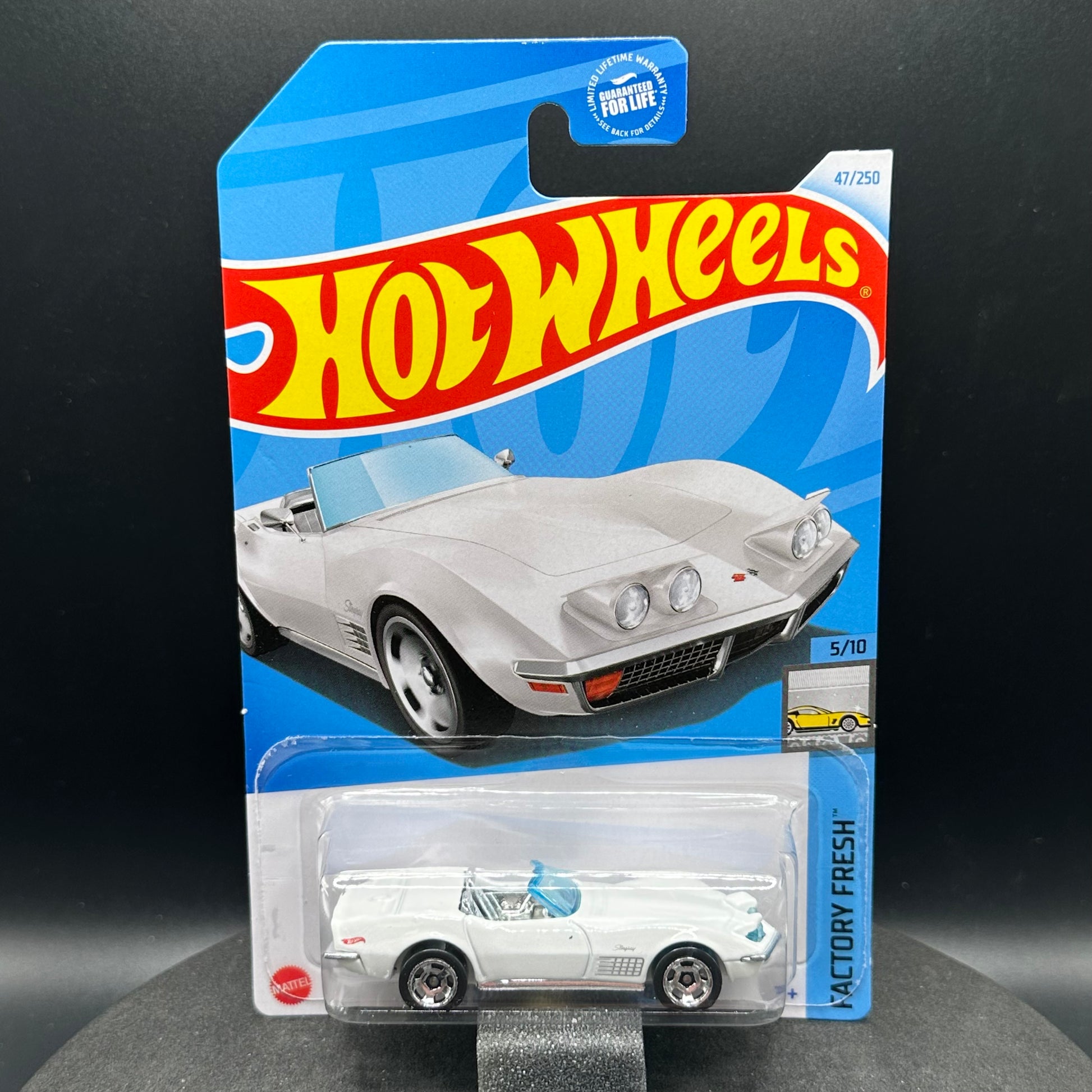 Hot Wheels ‘72 Corvette Stingray Convertible in white. There are multiple available and you might not get the exact one in the picture. They are all in good condition. All Hot Wheels will be wrapped in bubble wrap and shipped in a box for added protection.