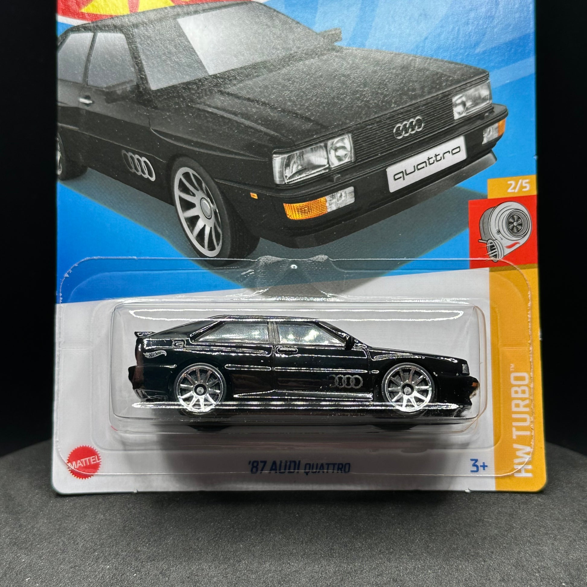 Hot Wheels ‘87 Audi Quattro in black. There are multiple available and you might not get the exact one in the picture. They are all in good condition but may have slightly soft corners or lightly dented edges. All Hot Wheels will be individually wrapped in bubble wrap and shipped in a box for added protection.