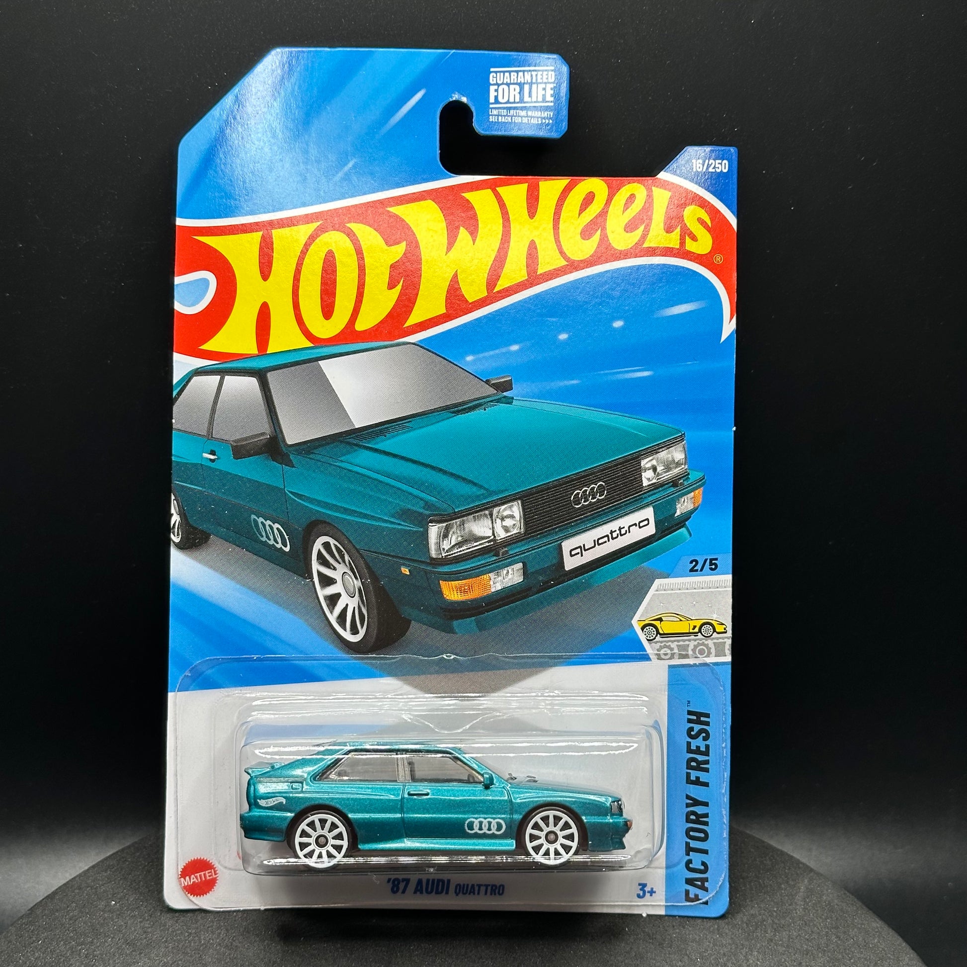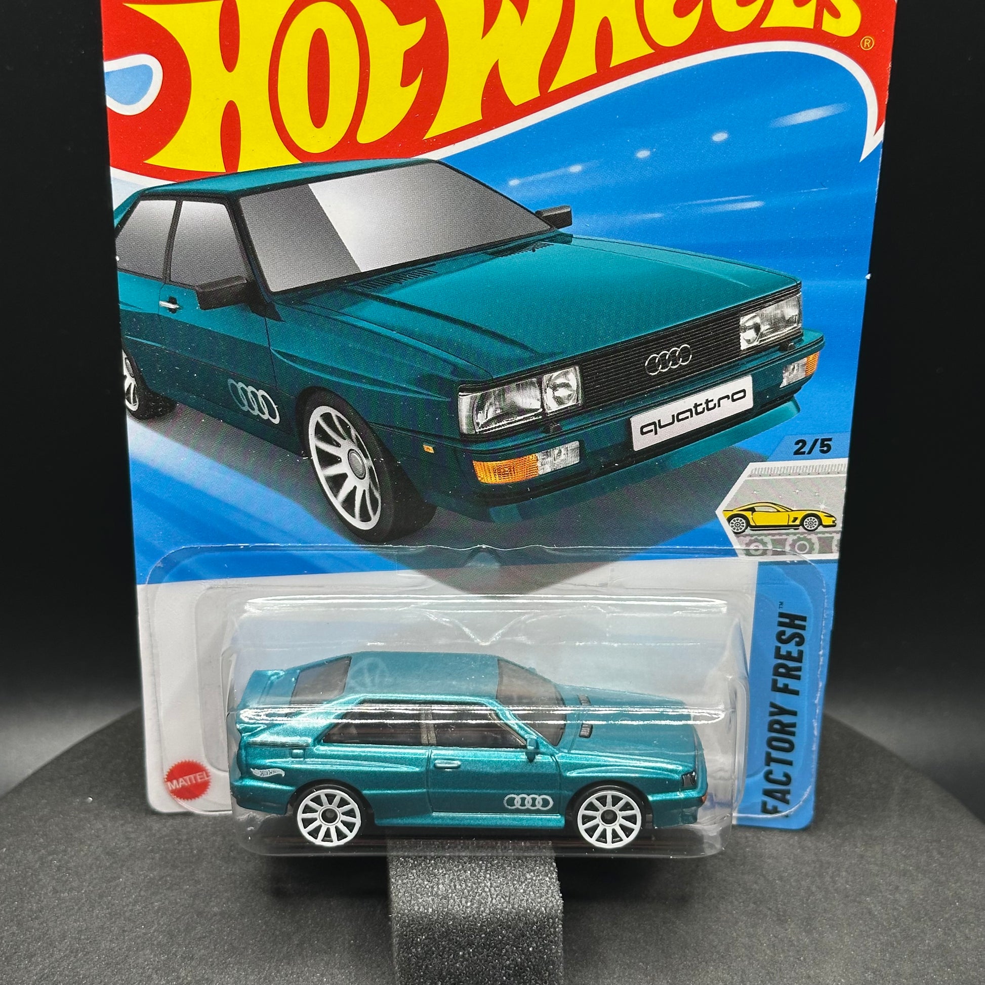 Hot Wheels ‘87 Audi Quattro in green. There are multiple available and you might not get the exact one in the picture. They are all in good condition but may have slightly soft corners or lightly dented edges. All Hot Wheels will be individually wrapped in bubble wrap and shipped in a box for added protection.