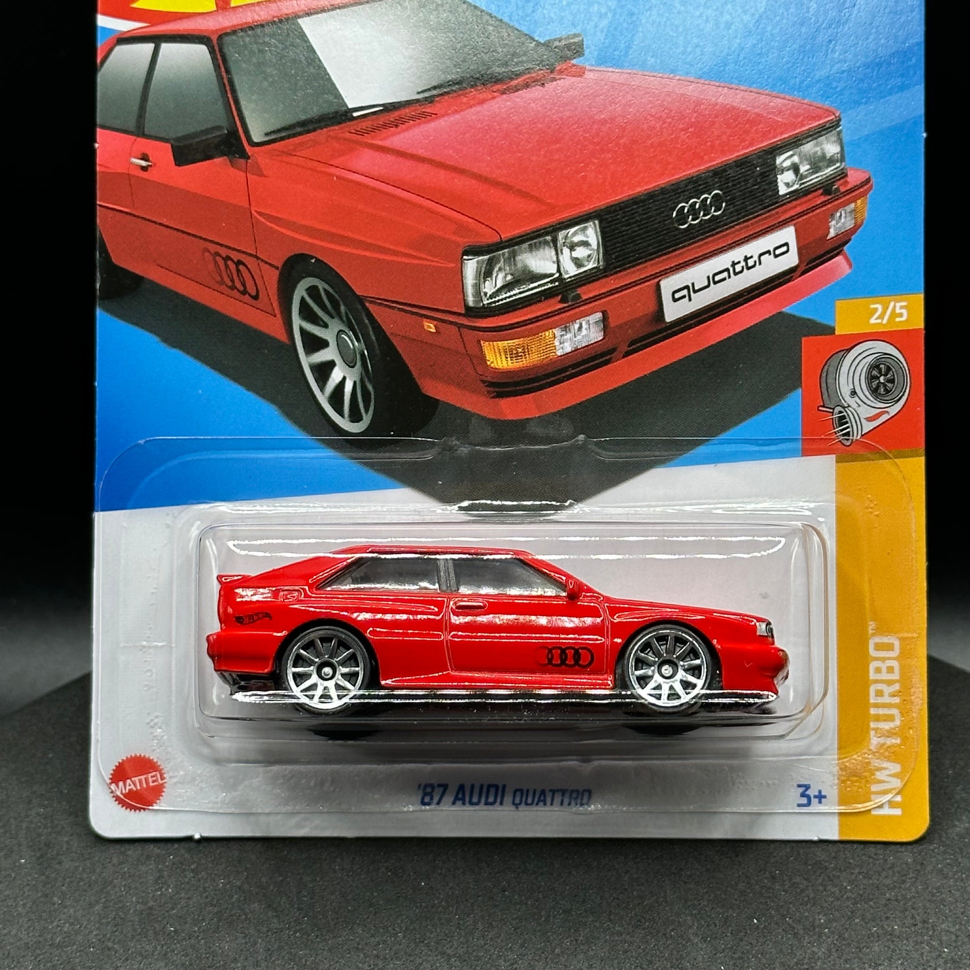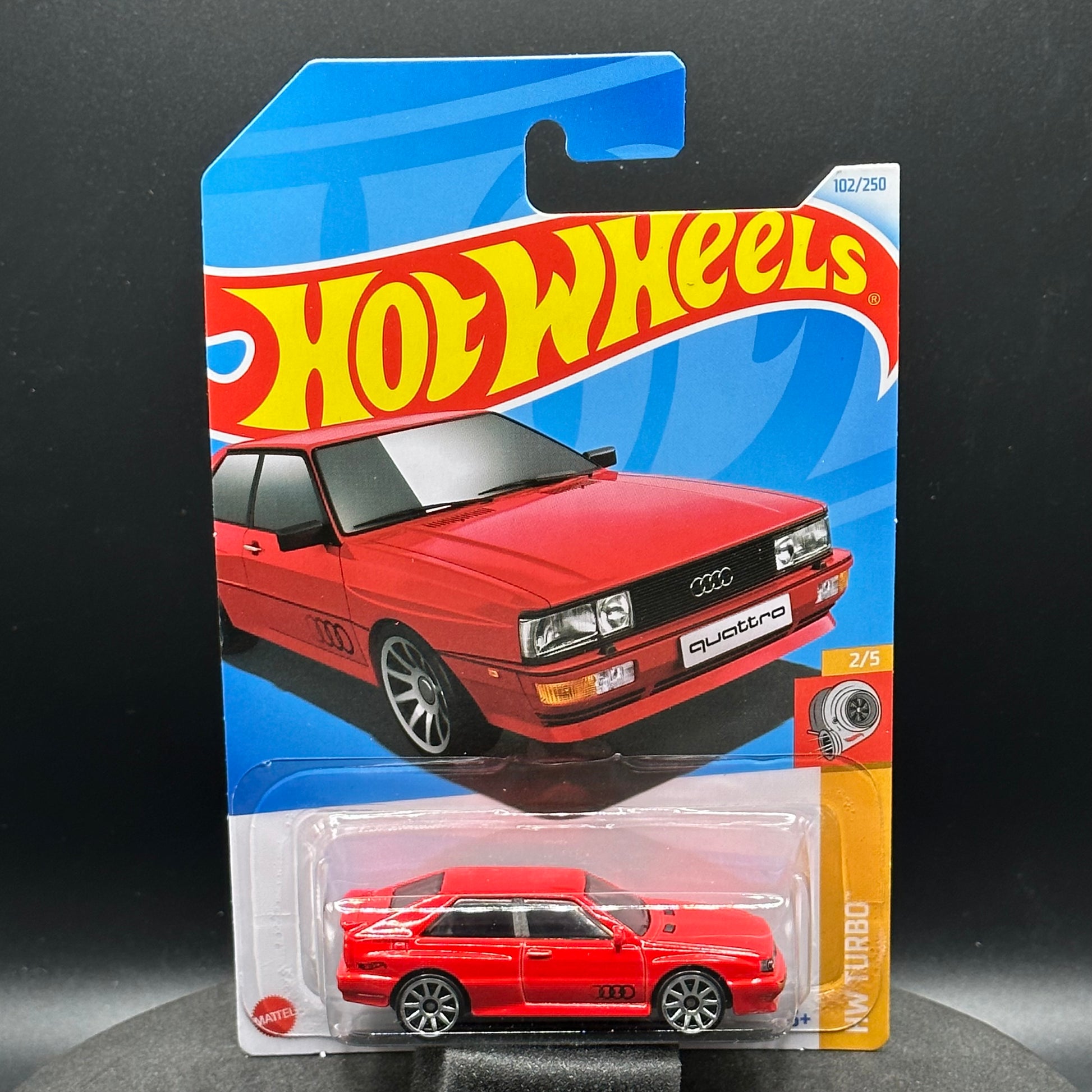 Hot Wheels ‘87 Audi Quattro in red. There are multiple available and you might not get the exact one in the picture. They are all in good condition but may have a slightly soft corner or slight bend on the hook. All Hot Wheels will be wrapped in bubble wrap and shipped in a box for added protection.