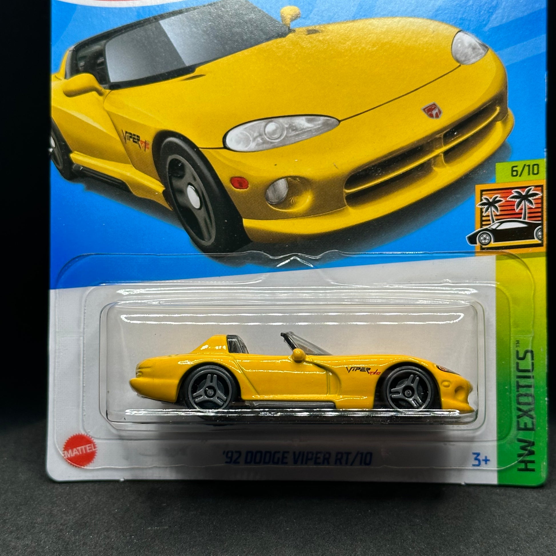 Hot Wheels ‘92 Dodge Viper RT/10 in yellow. There are multiple available and you might not get the exact one in the picture. They are all in good condition but may have slightly soft corners or lightly dented edges. All Hot Wheels will be individually wrapped in bubble wrap and shipped in a box for added protection.