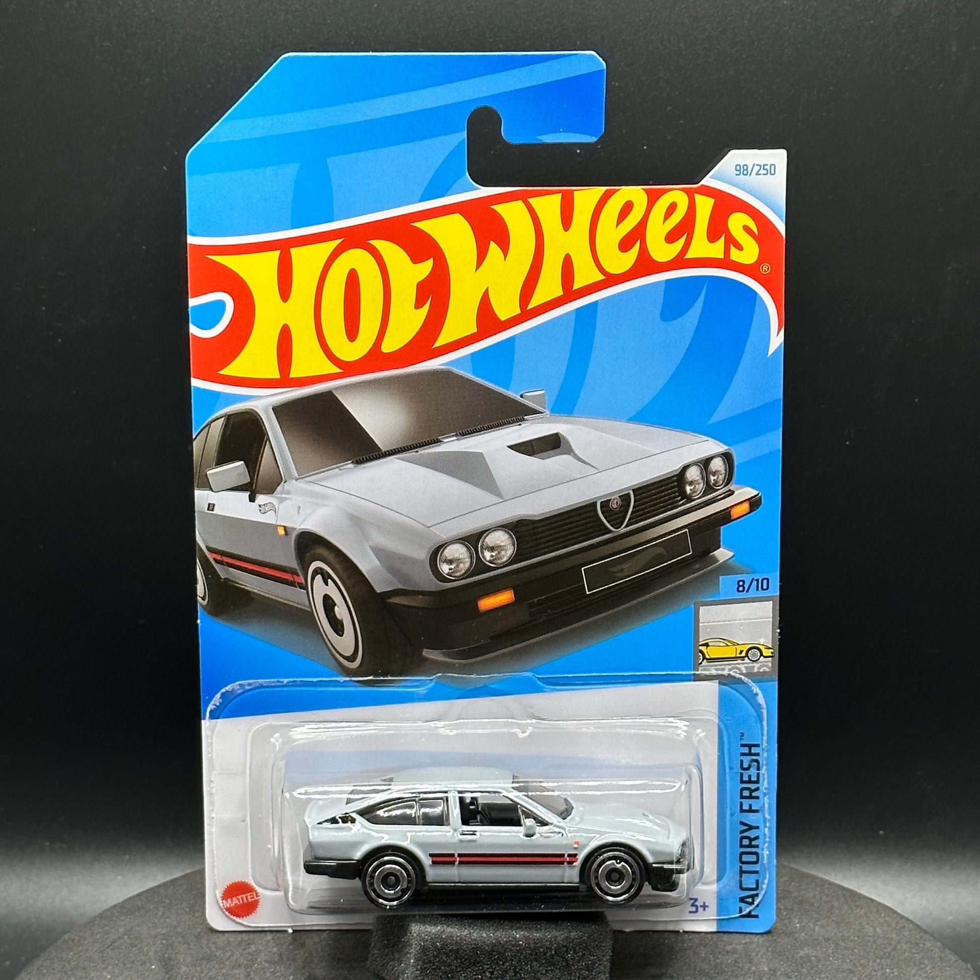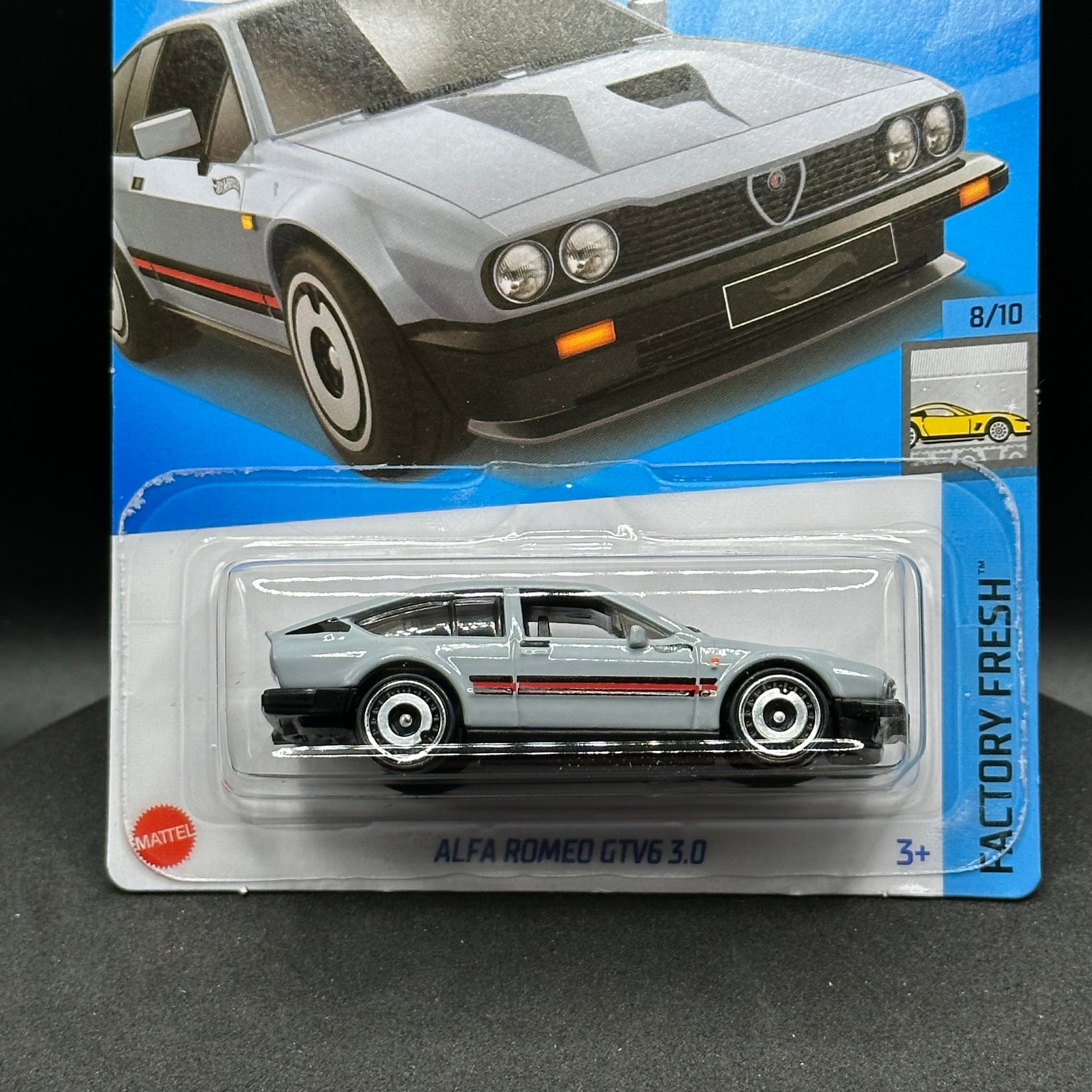 Hot Wheels Alfa Romeo GTV6 3.0 in silver. There are multiple available and you might not get the exact one in the picture. They are all in good condition but may have a slightly soft corner or slight bend on the hook. All Hot Wheels will be wrapped in bubble wrap and shipped in a box for added protection.