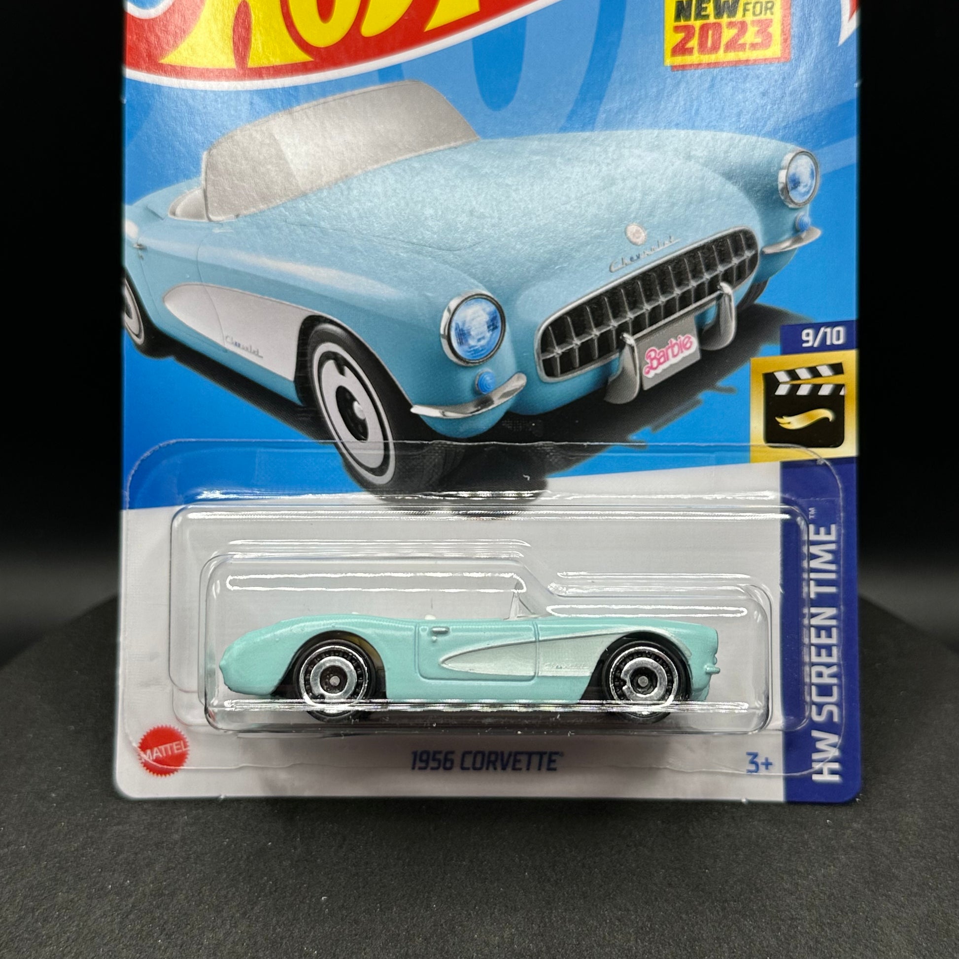 Hot Wheels Barbie 1956 Corvette in blue. There are multiple available and you might not get the exact one in the picture. They are all in good condition. All Hot Wheels will be wrapped in bubble wrap and shipped in a box for added protection.