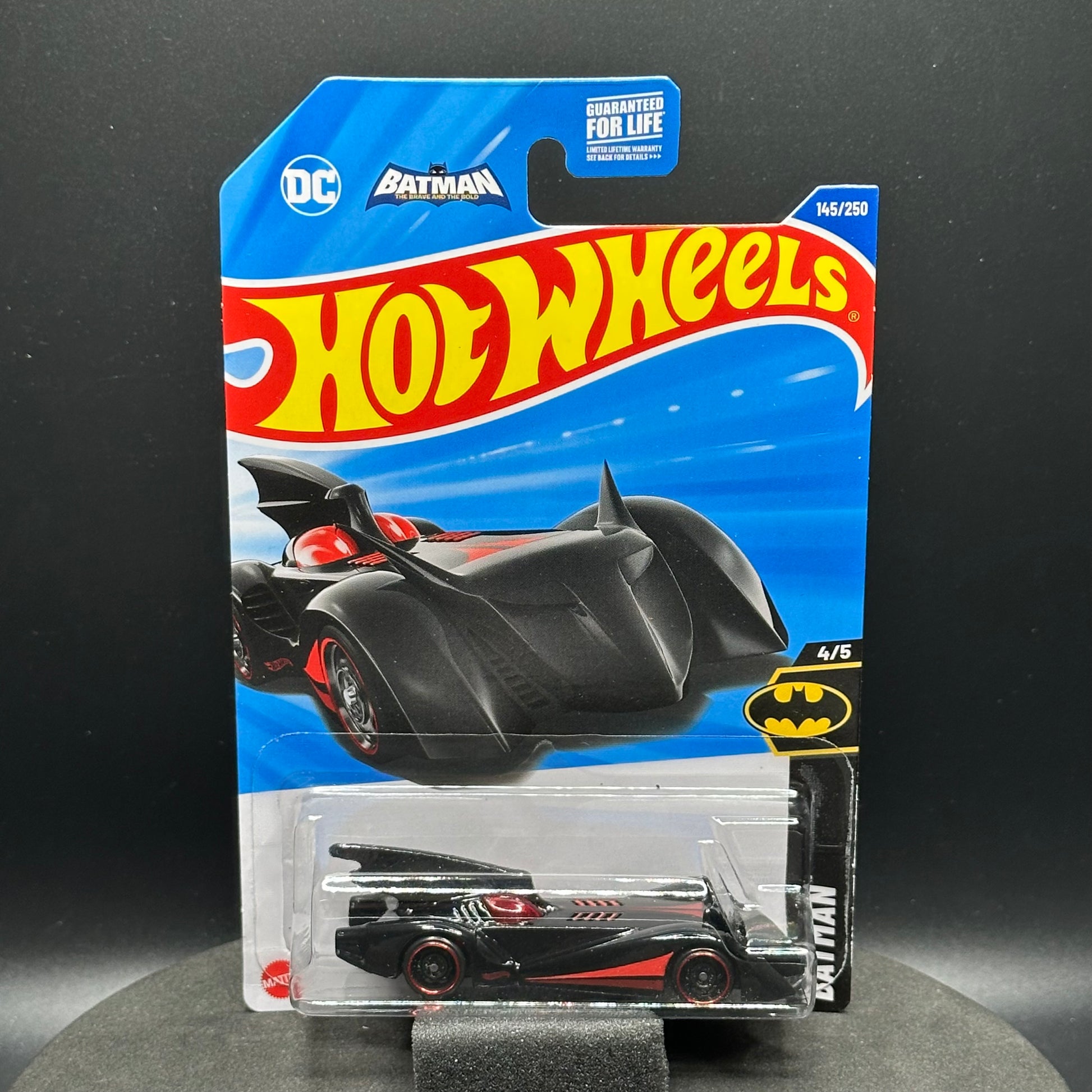 Hot Wheels Batman Batmobile in black with red accents. There are multiple available and you might not get the exact one in the picture. They are all in good condition but may have slightly soft corners or lightly dented edges. All Hot Wheels will be individually wrapped in bubble wrap and shipped in a box for added protection.