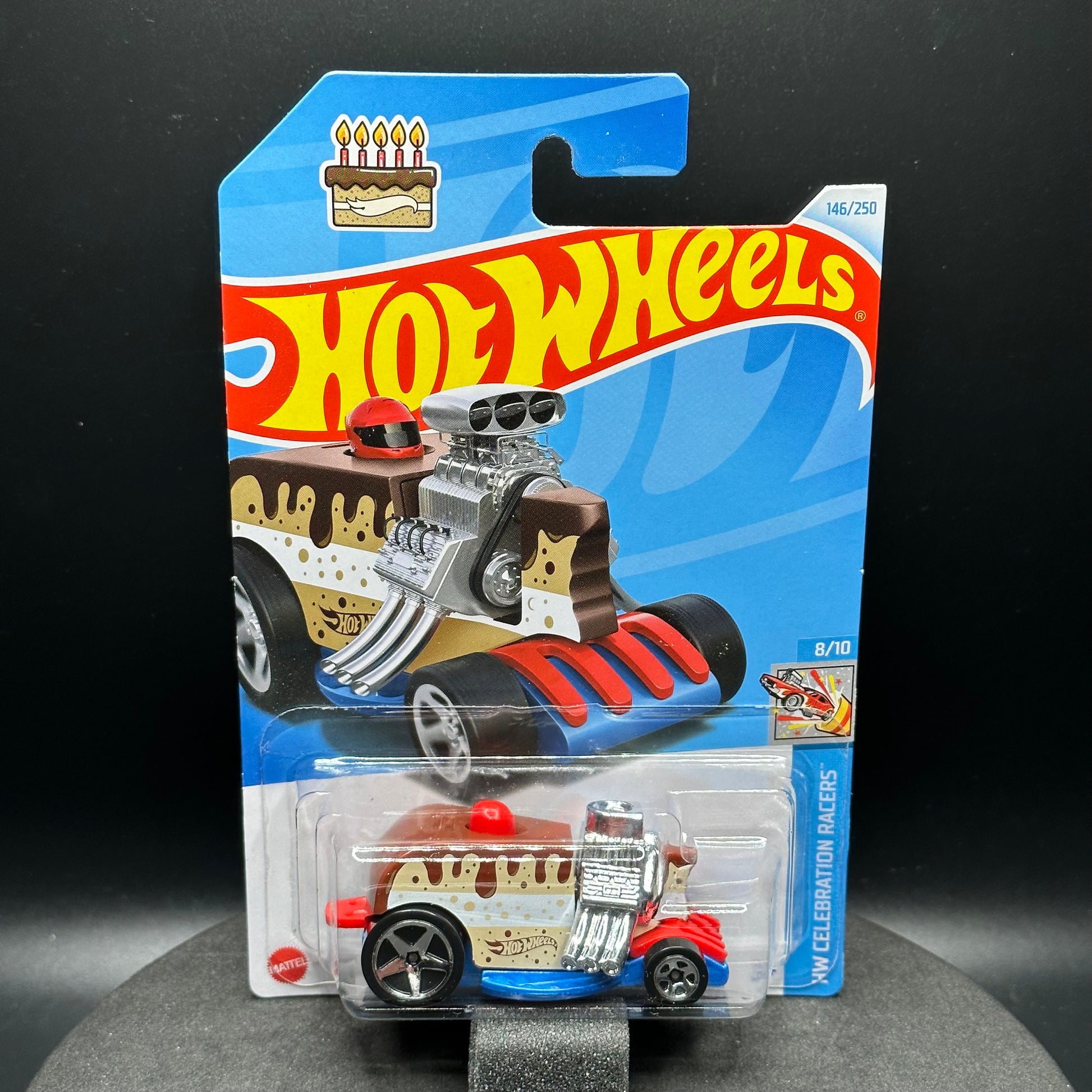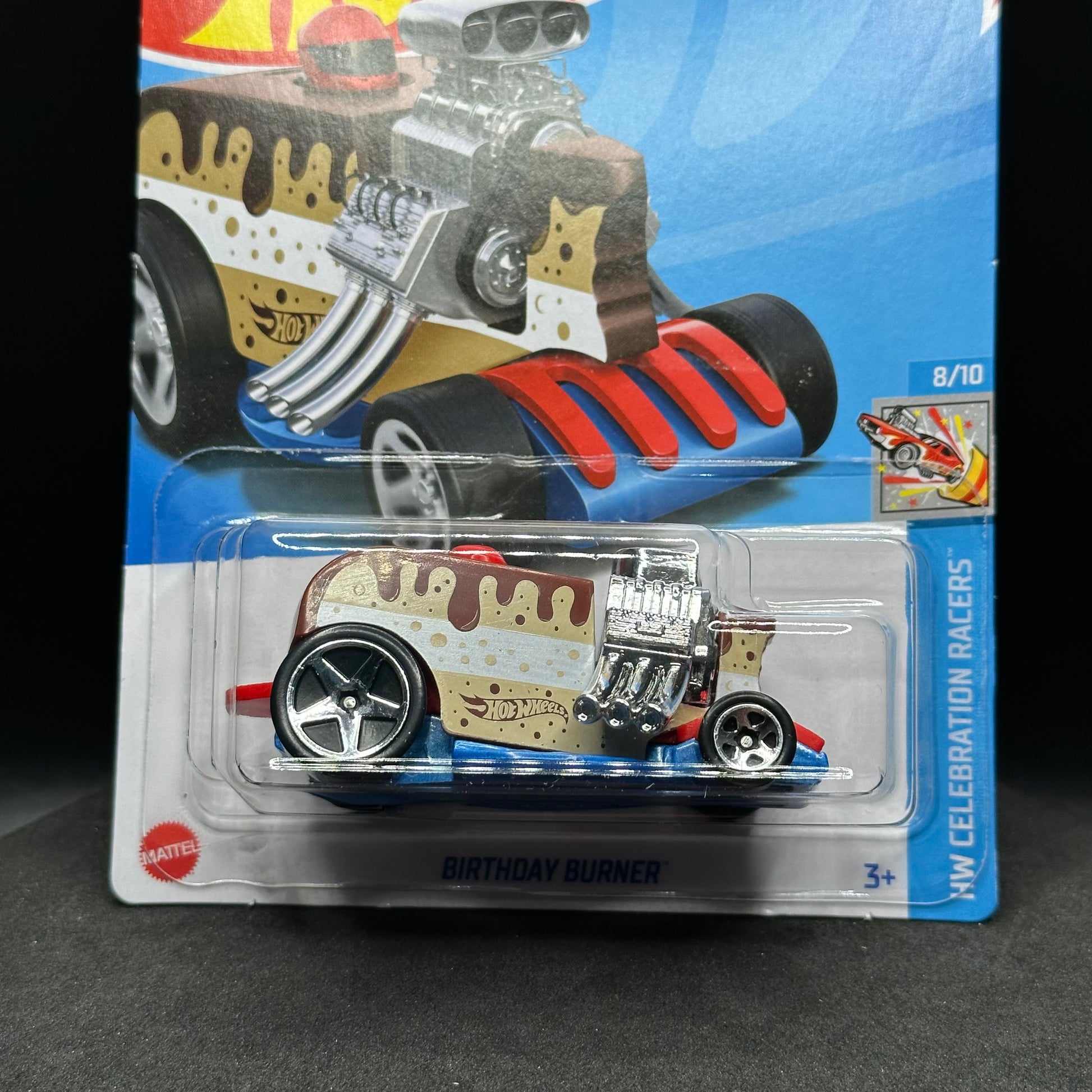 Hot Wheels Birthday Burner. There are multiple available and you might not get the exact one in the picture. They are all in good condition but may have slightly soft corners or lightly dented edges. All Hot Wheels will be individually wrapped in bubble wrap and shipped in a box for added protection.