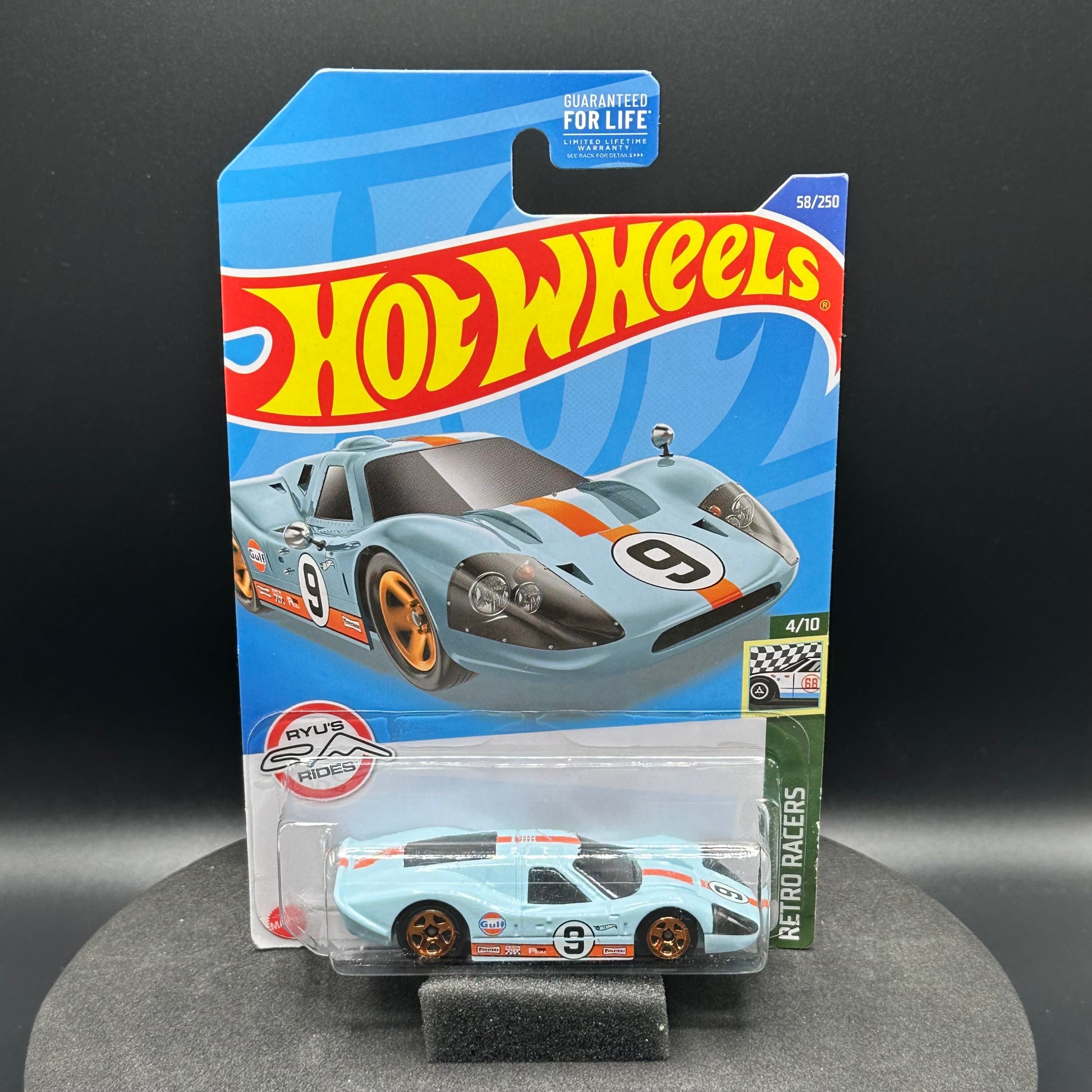 Hot Wheels ‘67 Ford GT40 Mk.IV. You might not get the exact one pictured as there are multiple available but it will be in good condition. Might have soft corners or dinted edges. They will be wrapped in bubble wrap and shipped in a sturdy box.