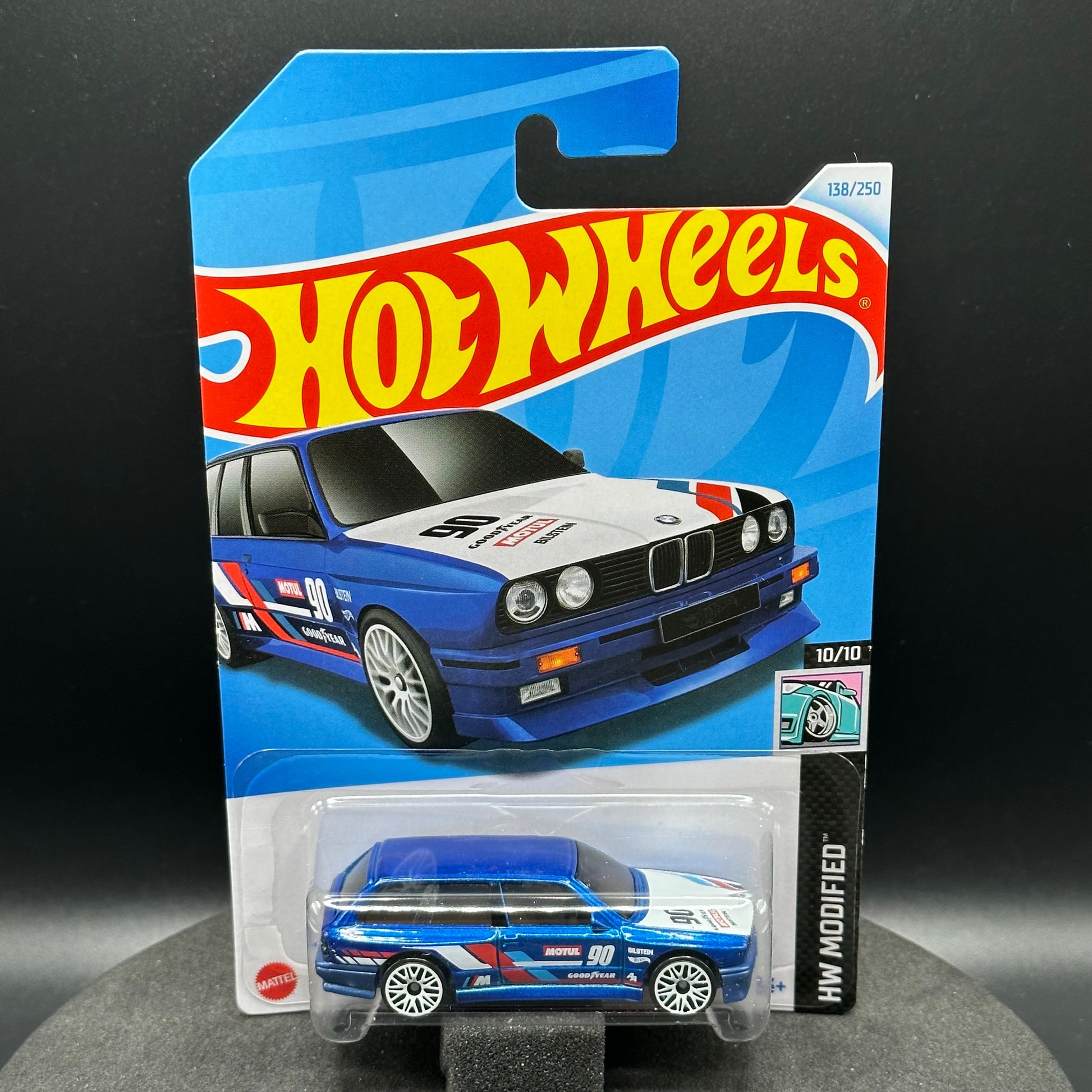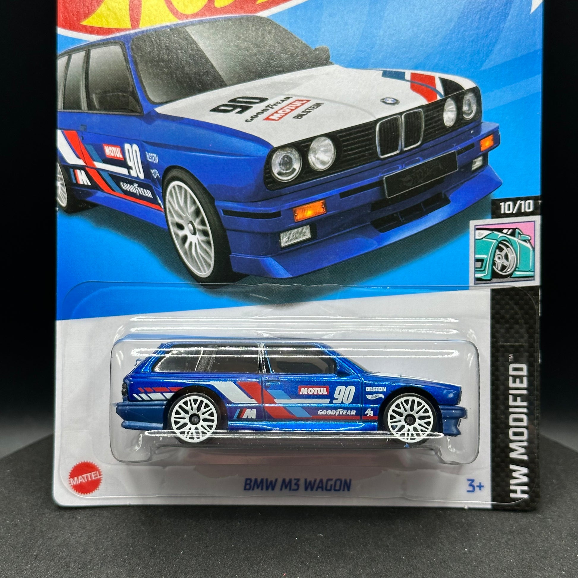 Hot Wheels BMW M3 Wagon in blue. There are multiple available and you might not get the exact one in the picture. They are all in good condition but may have slightly soft corners, lightly dented edges, or slight crease on the hook. All Hot Wheels will be individually wrapped in bubble wrap and shipped in a box for added protection.