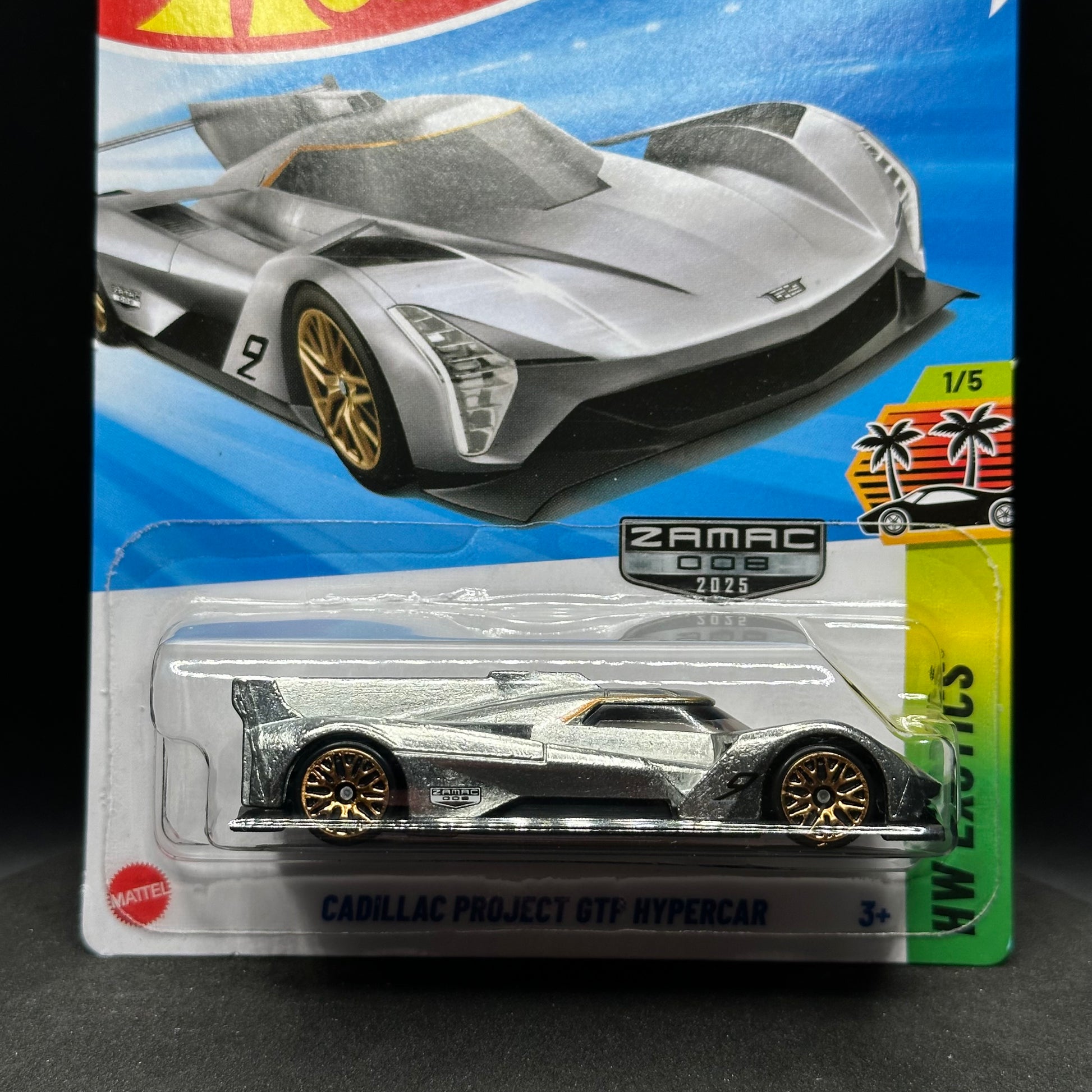 Hot Wheels Cadillac Project GTP Hypercar ZAMAC. There are multiple available and you might not get the exact one in the picture. They are all in good condition but may have slightly soft corners or lightly dented edges. All Hot Wheels will be individually wrapped in bubble wrap and shipped in a box for added protection.