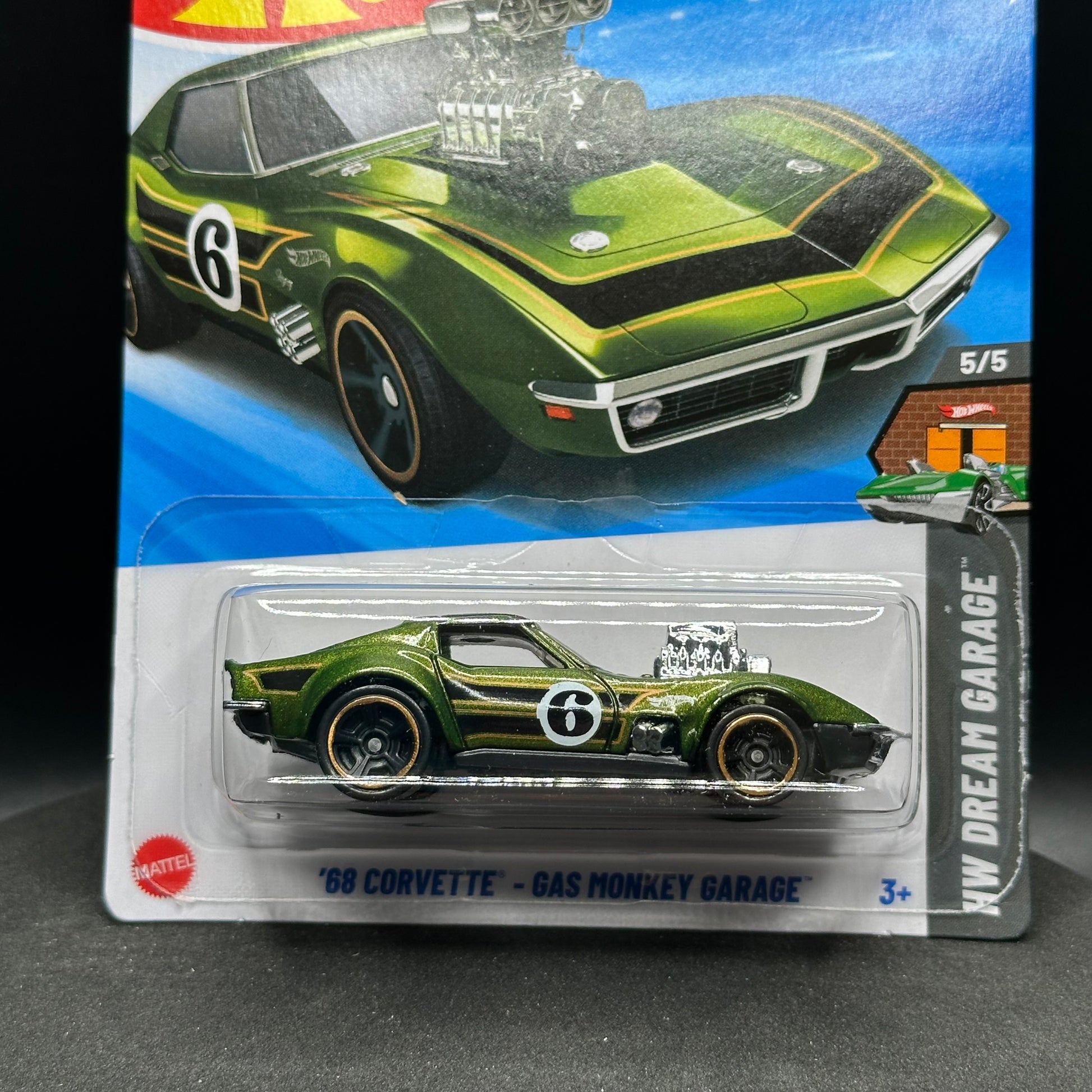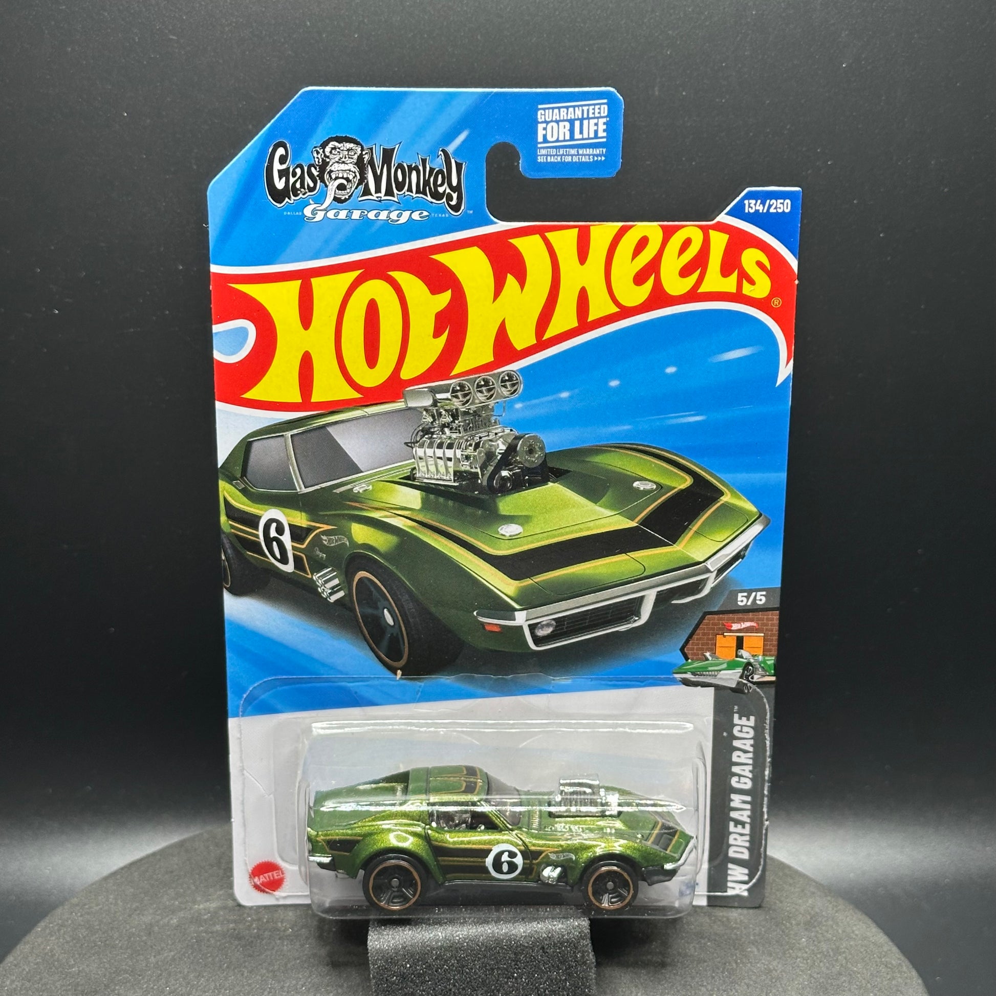 Hot Wheels ‘68 Corvette Gas Monkey Garage in green. There are multiple available and you might not get the exact one in the picture. They are all in good condition but may have slightly soft corners or lightly dented edges. All Hot Wheels will be individually wrapped in bubble wrap and shipped in a box for added protection.