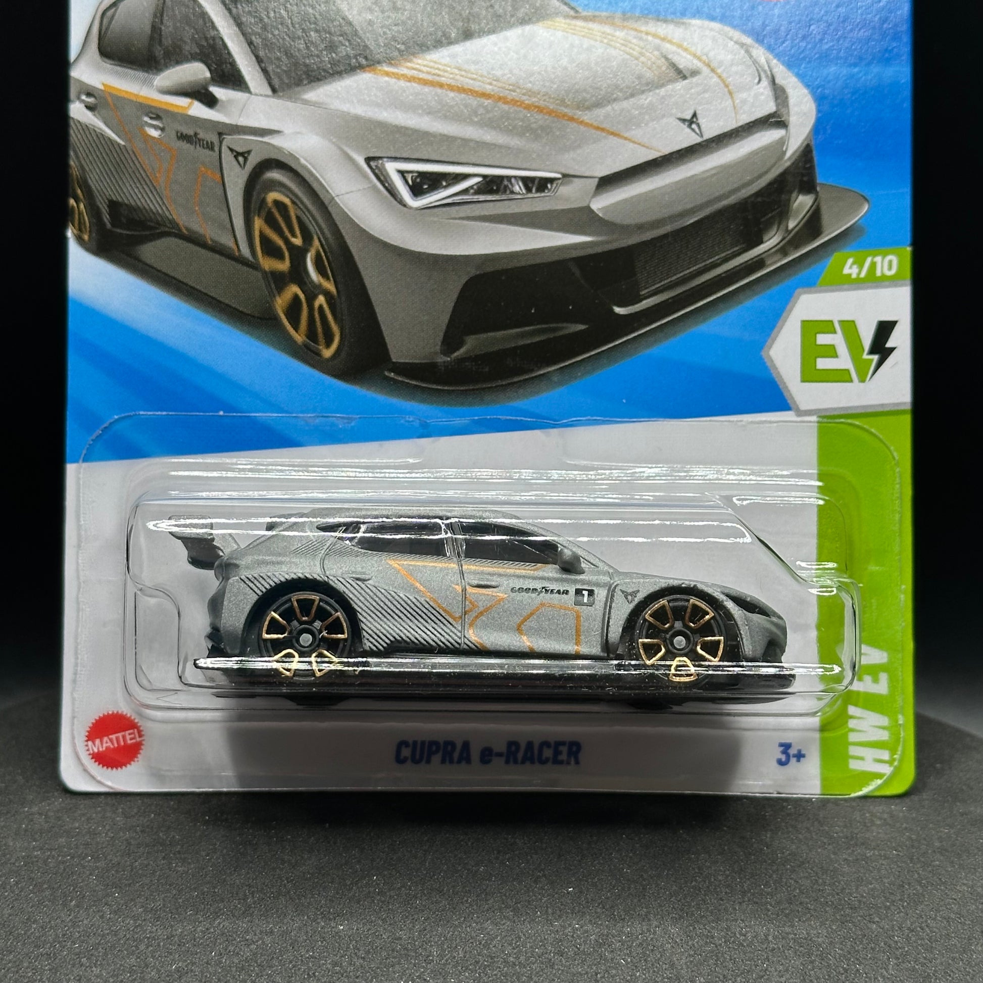 Hot Wheels Cupra E Racer in gray. There are multiple available and you might not get the exact one in the picture. They are all in good condition but may have slightly soft corners or lightly dented edges. All Hot Wheels will be individually wrapped in bubble wrap and shipped in a box for added protection.
