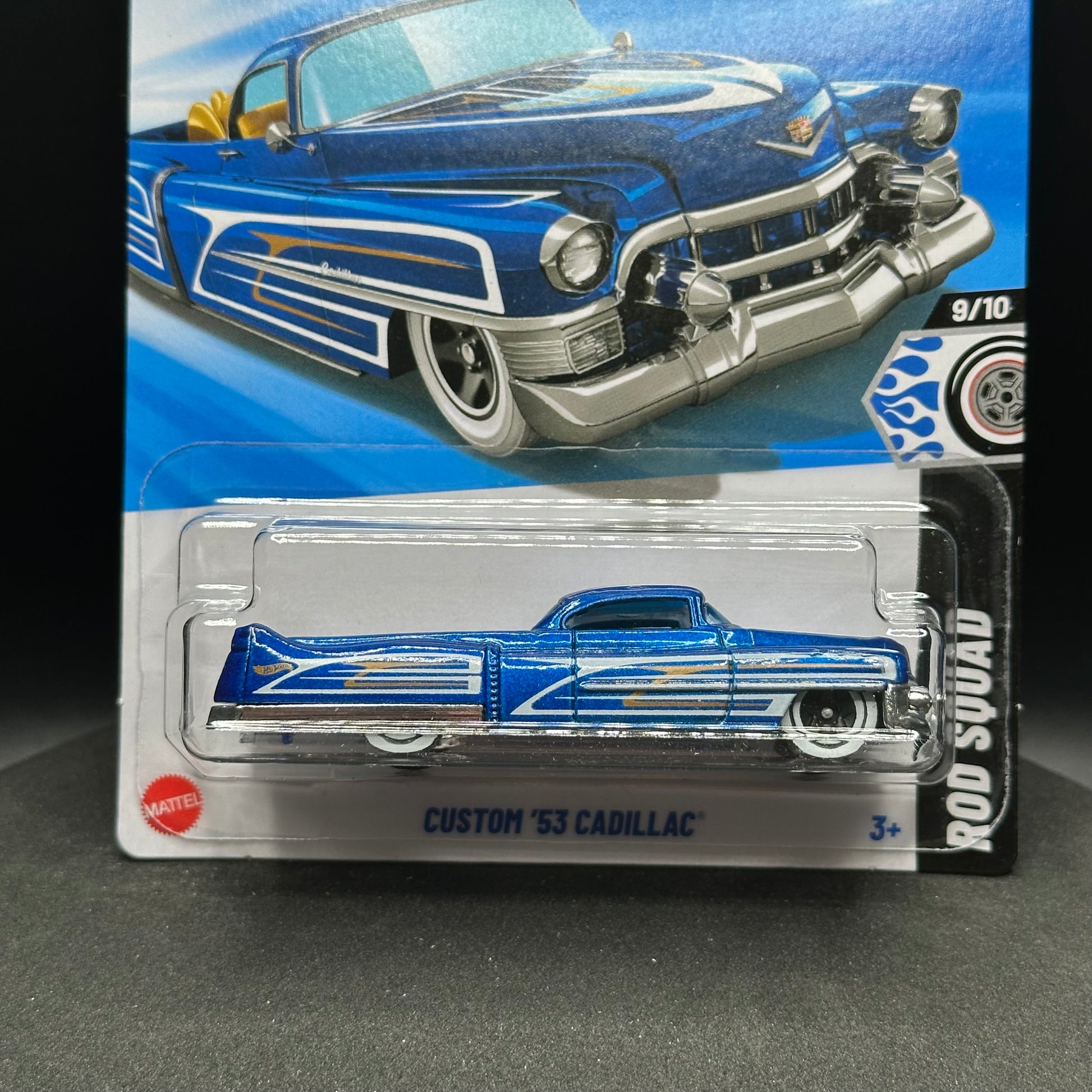 Hot Wheels Custom ‘53 Cadillac in blue. There are multiple available and you might not get the exact one in the picture. They are all in good condition but may have slightly soft corners or lightly dented edges. All Hot Wheels will be individually wrapped in bubble wrap and shipped in a box for added protection.