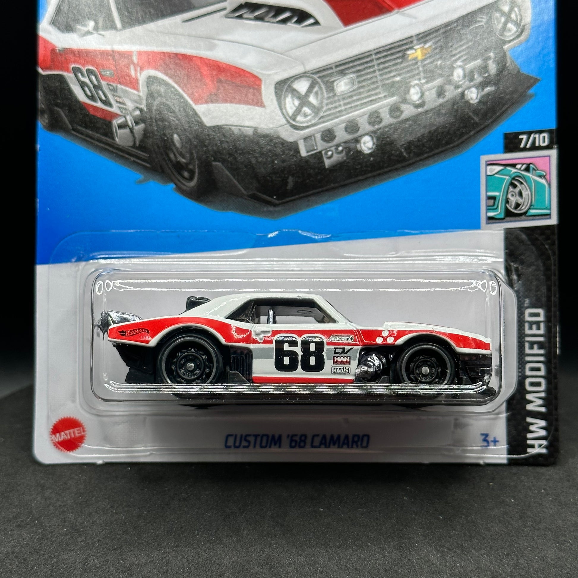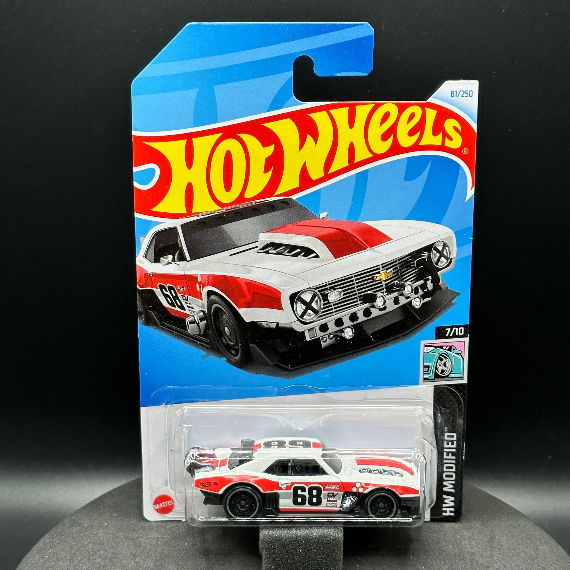 Hot Wheels Custom ‘68 Camaro in white and red. There are multiple available and you might not get the exact one in the picture. They are all in good condition but may have slightly soft corners or lightly dented edges. All Hot Wheels will be individually wrapped in bubble wrap and shipped in a box for added protection.