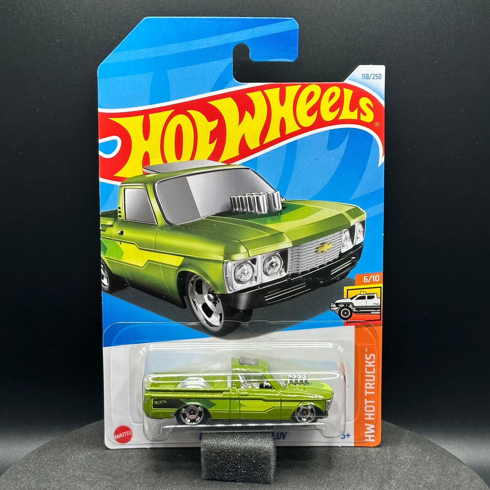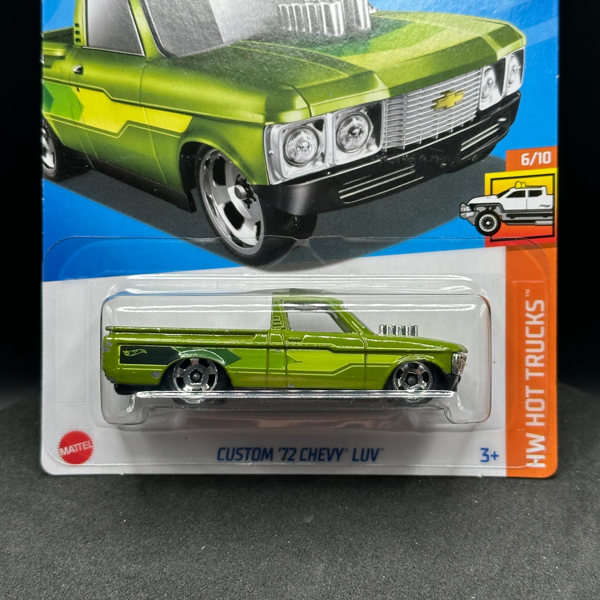 Hot Wheels Custom ‘72 Chevy Luv pickup. There are multiple available and you might not get the exact one in the picture. They are all in good condition but may have slightly soft corners. All Hot Wheels will be wrapped in bubble wrap and shipped in a box for added protection.