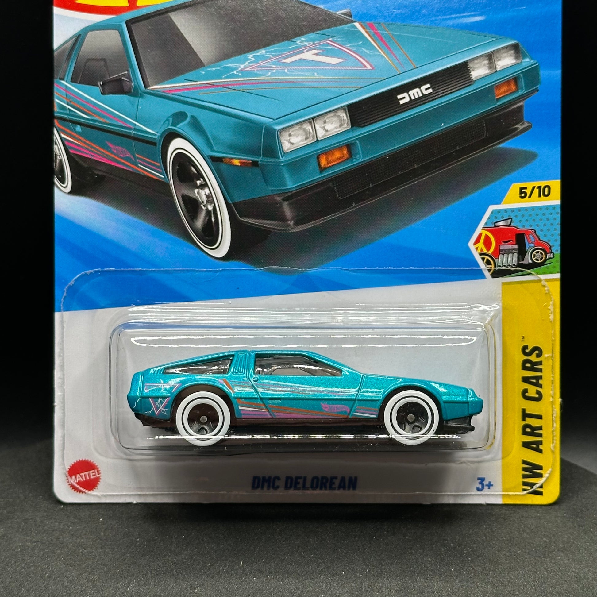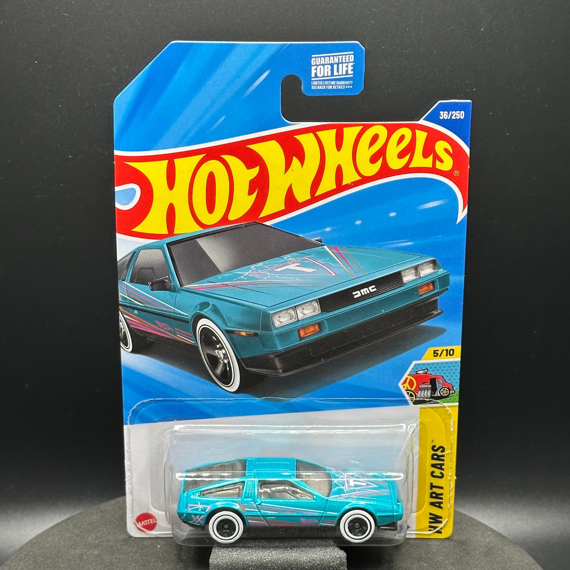 Hot Wheels DMC DeLorean in teal. There are multiple available and you might not get the exact one in the picture. They are all in good condition but may have slightly soft corners or lightly dented edges. All Hot Wheels will be individually wrapped in bubble wrap and shipped in a box for added protection.