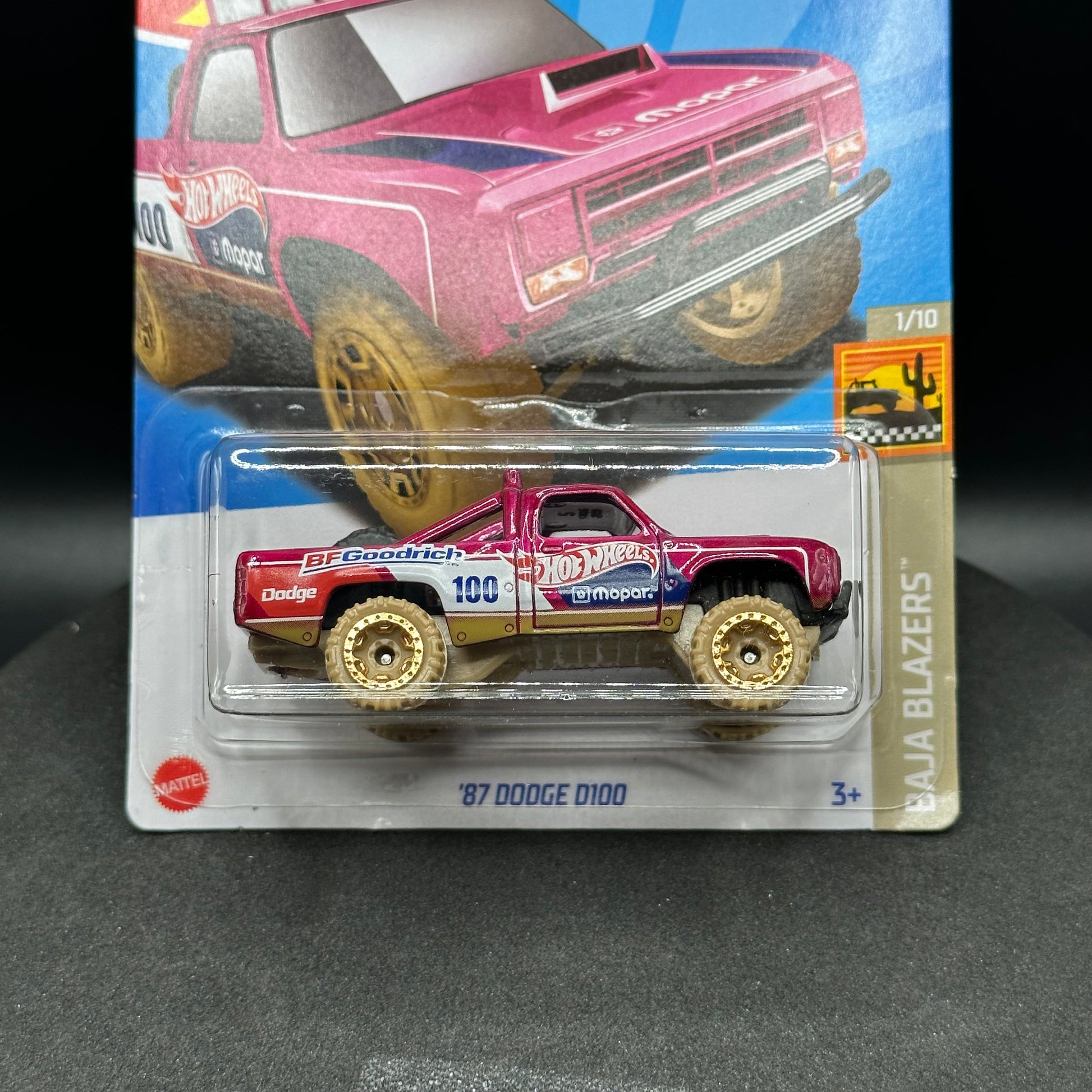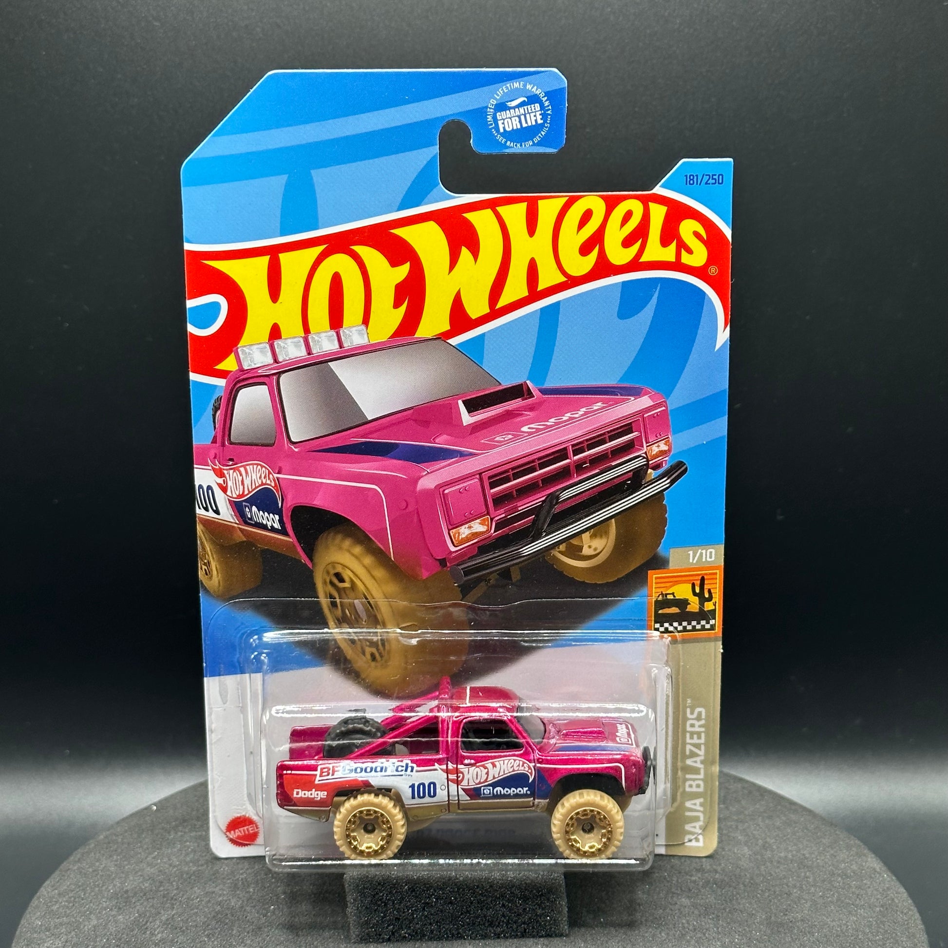 Hot Wheels 1987 Dodge D100 in pink. There are multiple available and you might not get the exact one in the picture. They are all in good condition. All Hot Wheels will be wrapped in bubble wrap and shipped in a box for added protection.
