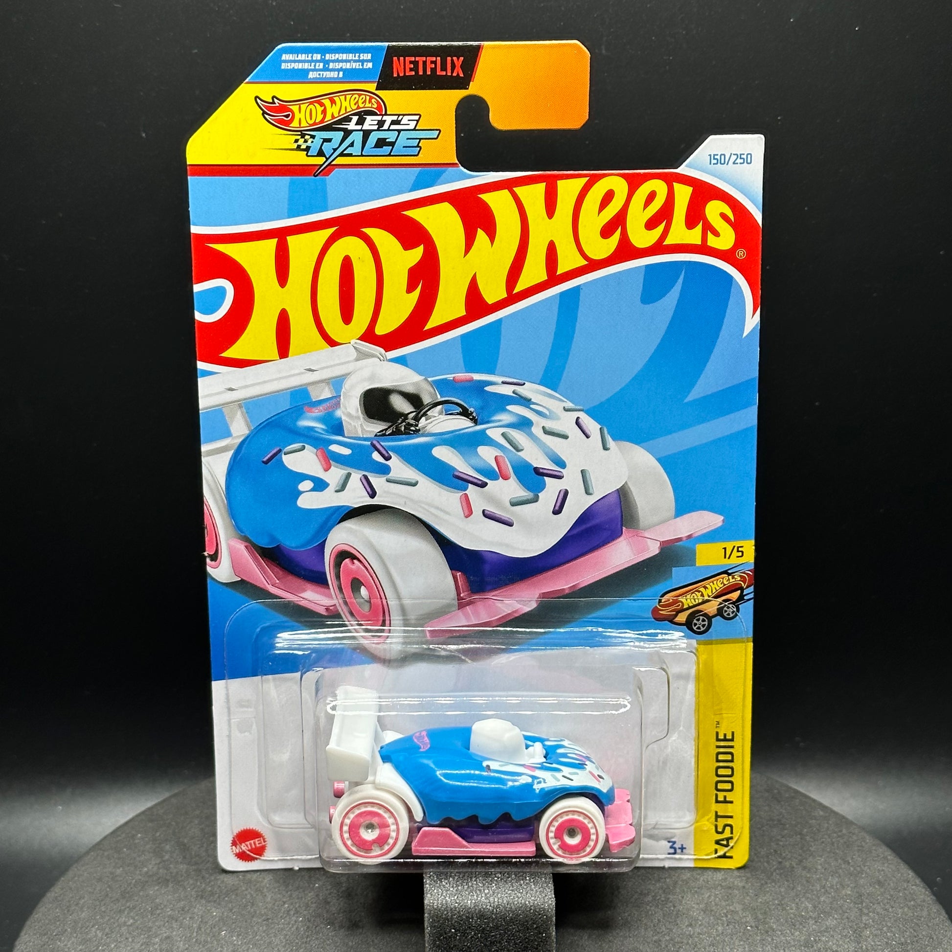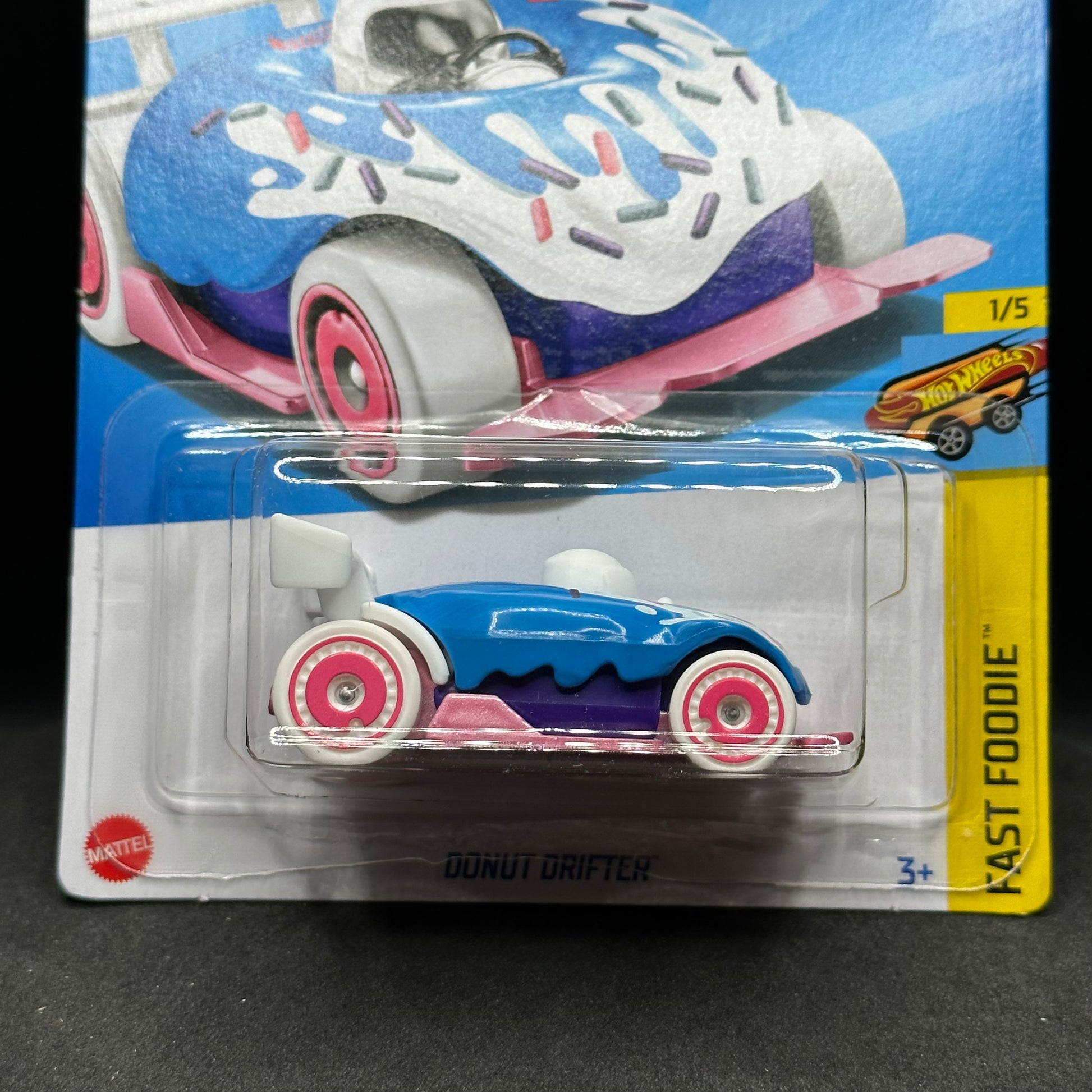 Hot Wheels Donut Drifter in blue with white frosting. There are multiple available and you might not get the exact one in the picture. They are all in good condition but may have slightly soft corners or lightly dented edges. All Hot Wheels will be individually wrapped in bubble wrap and shipped in a box for added protection.