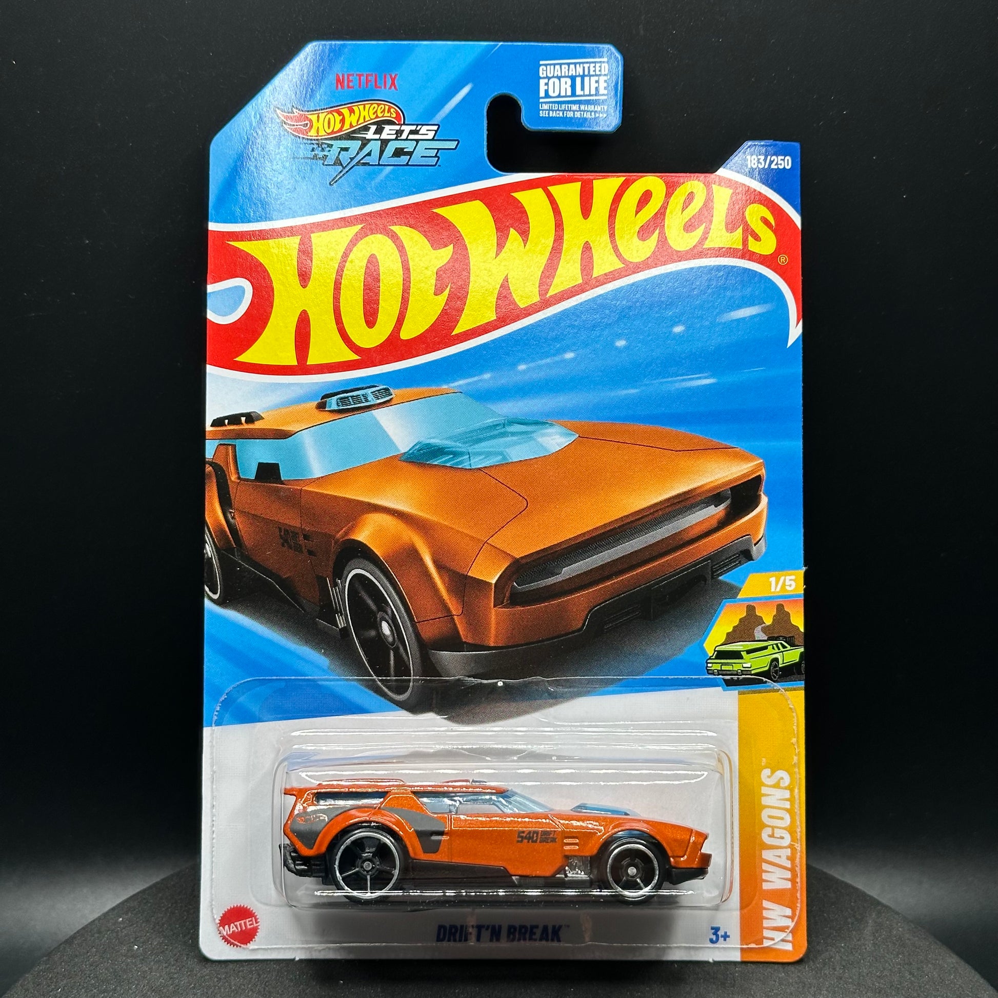 Hot Wheels Drift N Break in orange. There are multiple available and you might not get the exact one in the picture. They are all in good condition but may have slightly soft corners or lightly dented edges. All Hot Wheels will be individually wrapped in bubble wrap and shipped in a box for added protection.