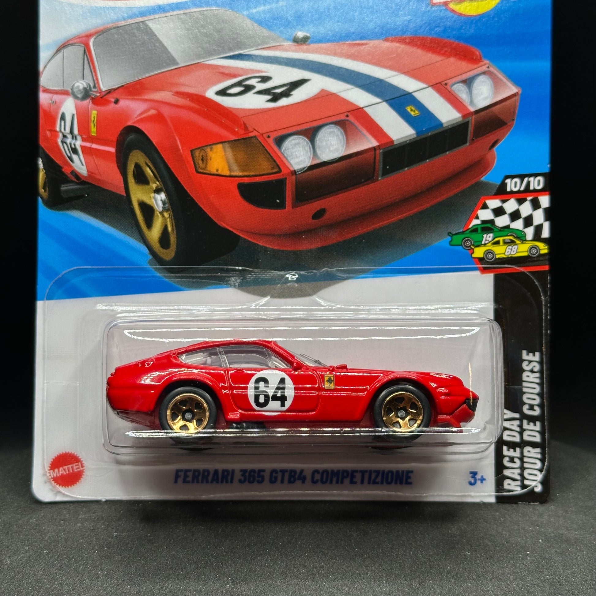 Hot Wheels Ferrari 365 GTB4 Competizione in red. There are multiple available and you might not get the exact one in the picture. They are all in good condition but may have slightly soft corners or lightly dented edges. All Hot Wheels will be individually wrapped in bubble wrap and shipped in a box for added protection.