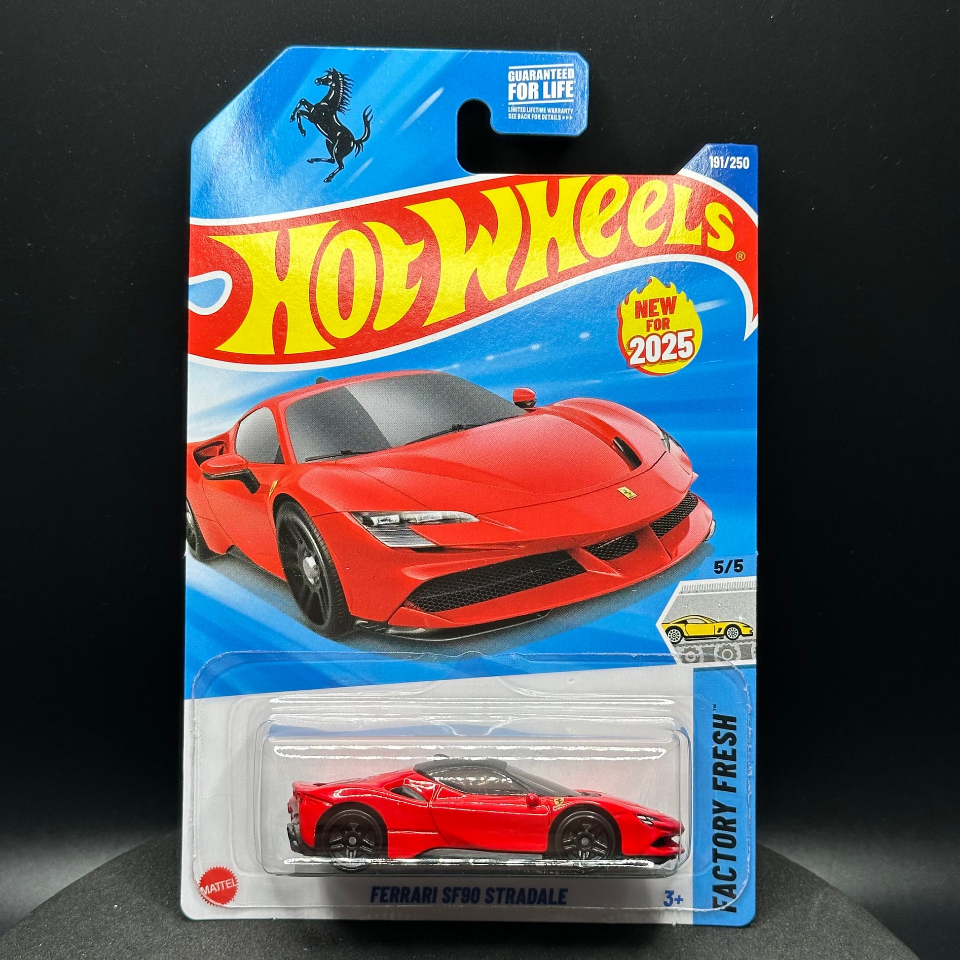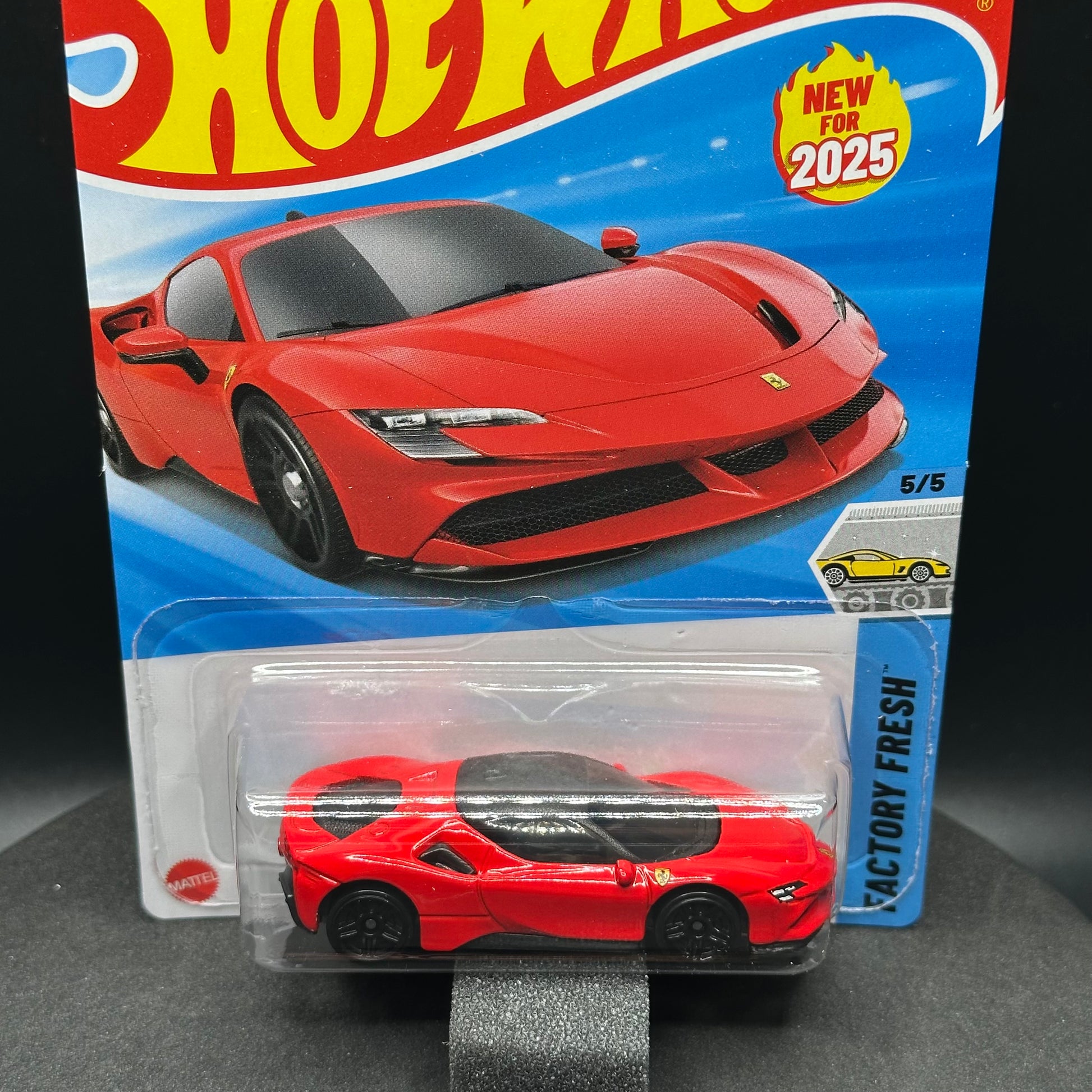 Hot Wheels Ferrari SF90 Stradale in red. There are multiple available and you might not get the exact one in the picture. They are all in good condition but may have slightly soft corners or lightly dented edges. All Hot Wheels will be individually wrapped in bubble wrap and shipped in a box for added protection.