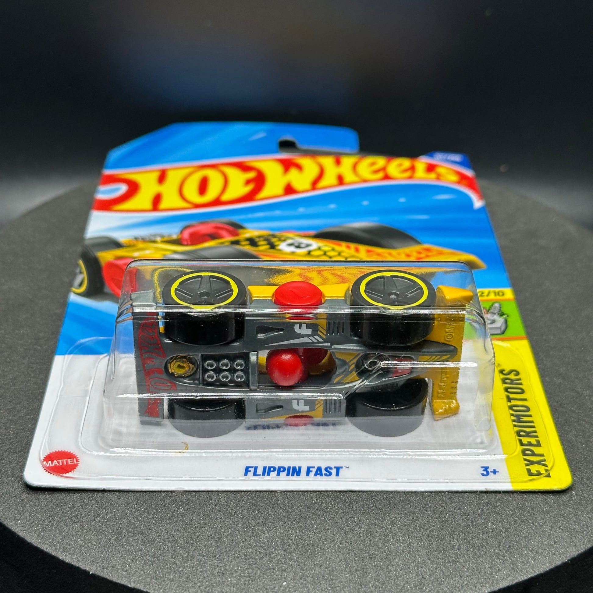 Hot Wheels Flippin Fast in yellow and gray. It’s also a fidget spinner. There are multiple available and you might not get the exact one in the picture. They are all in good condition but may have slightly soft corners or lightly dented edges. All Hot Wheels will be individually wrapped in bubble wrap and shipped in a box for added protection.