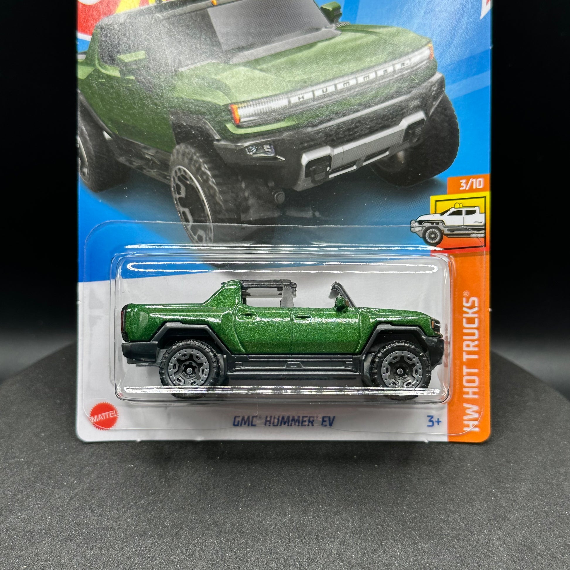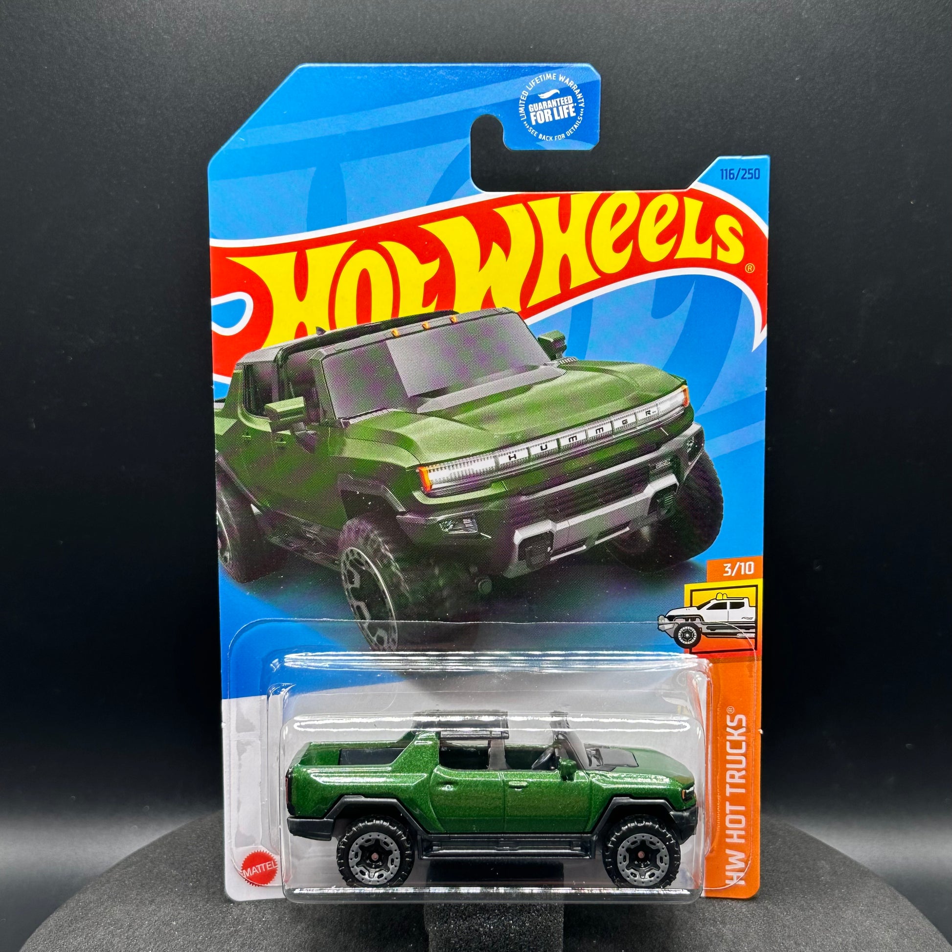 Hot Wheels GMC Hummer EV in green. There are multiple available and you might not get the exact one in the picture. They are all in good condition. All Hot Wheels will be wrapped in bubble wrap and shipped in a box for added protection.
