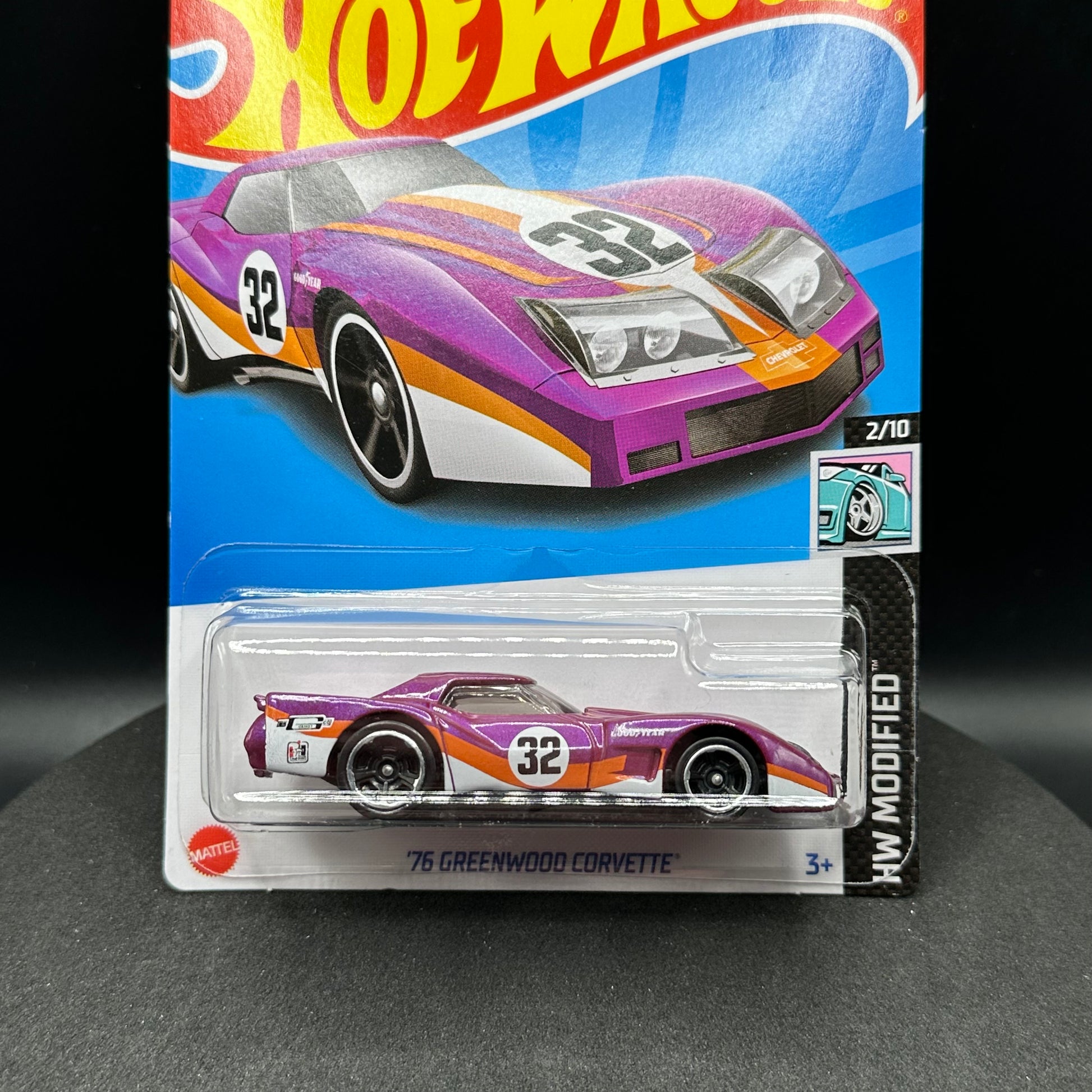 Hot Wheels ‘76 Greenwood Corvette. There are multiple available and you might not get the exact one in the picture. They are all in good condition. All Hot Wheels will be wrapped in bubble wrap and shipped in a box for added protection.