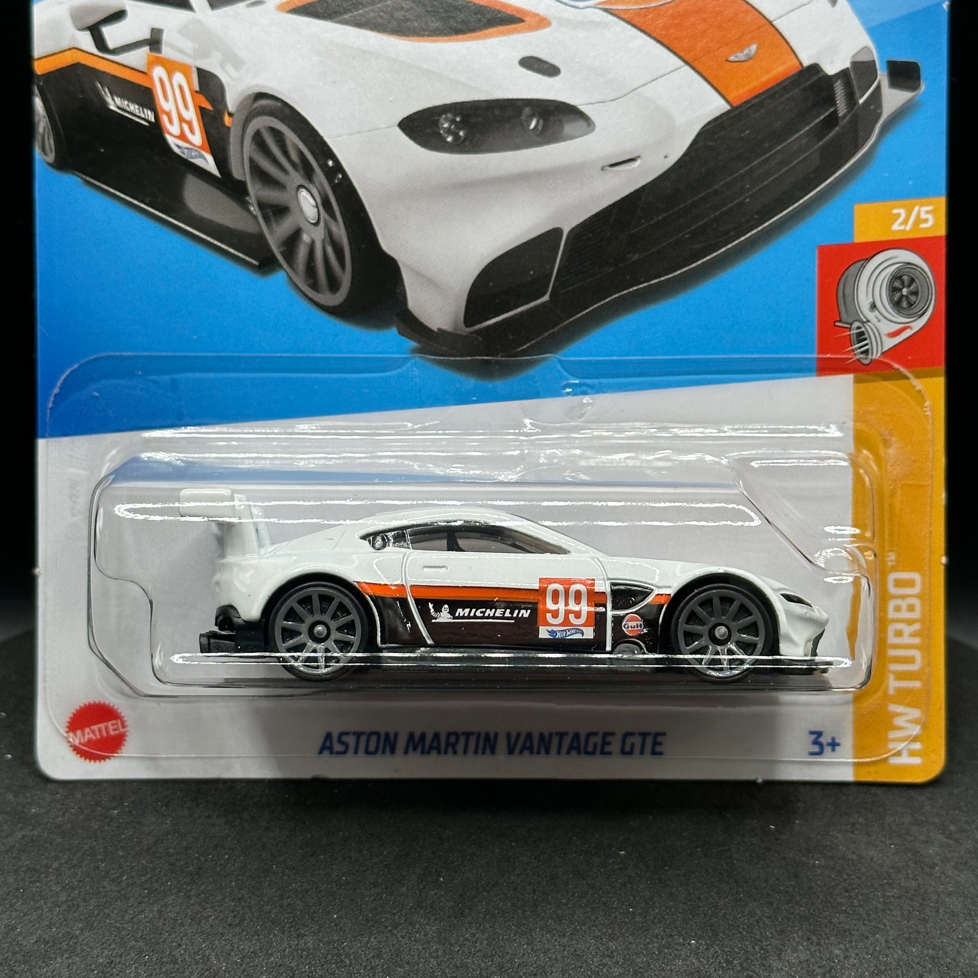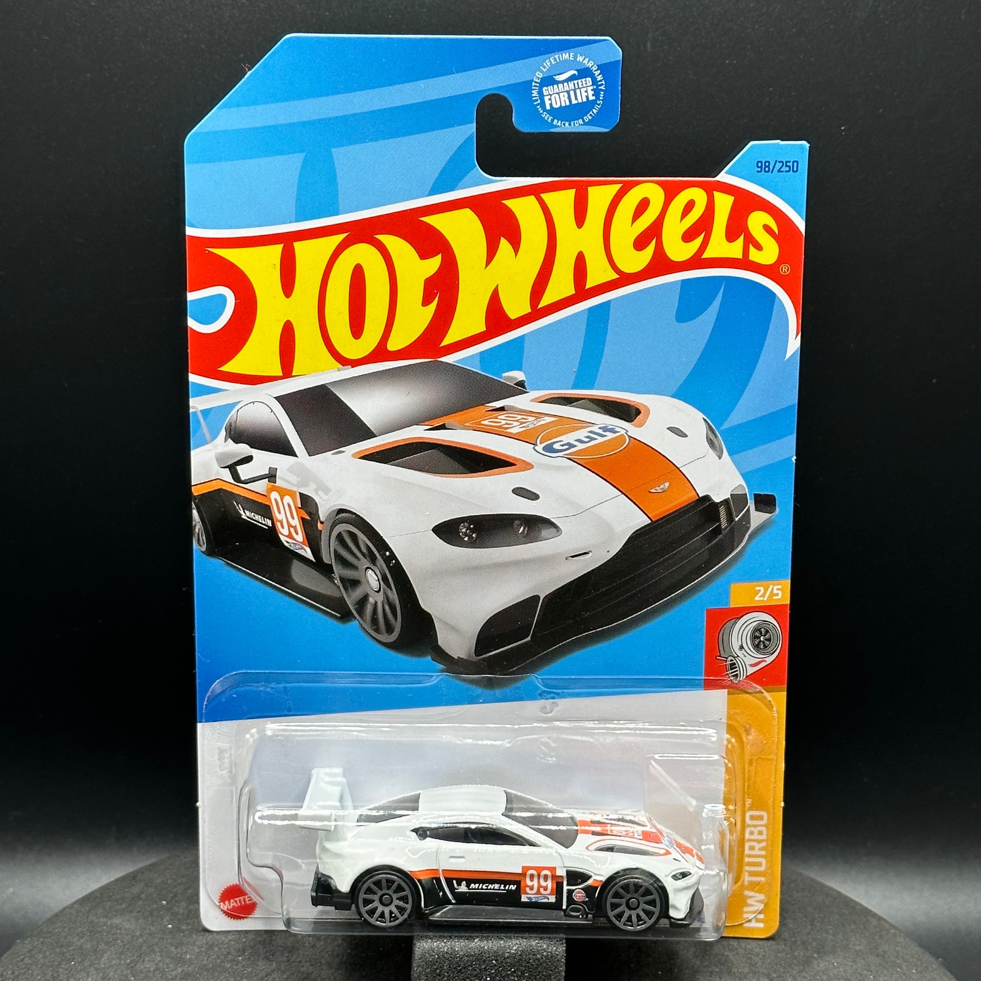 Hot Wheels Gulf Aston Martin Vantage GTE in white Gulf. There are multiple available and you might not get the exact one in the picture. They are all in good condition but may have slightly soft corners or lightly dented edges. All Hot Wheels will be individually wrapped in bubble wrap and shipped in a box for added protection.