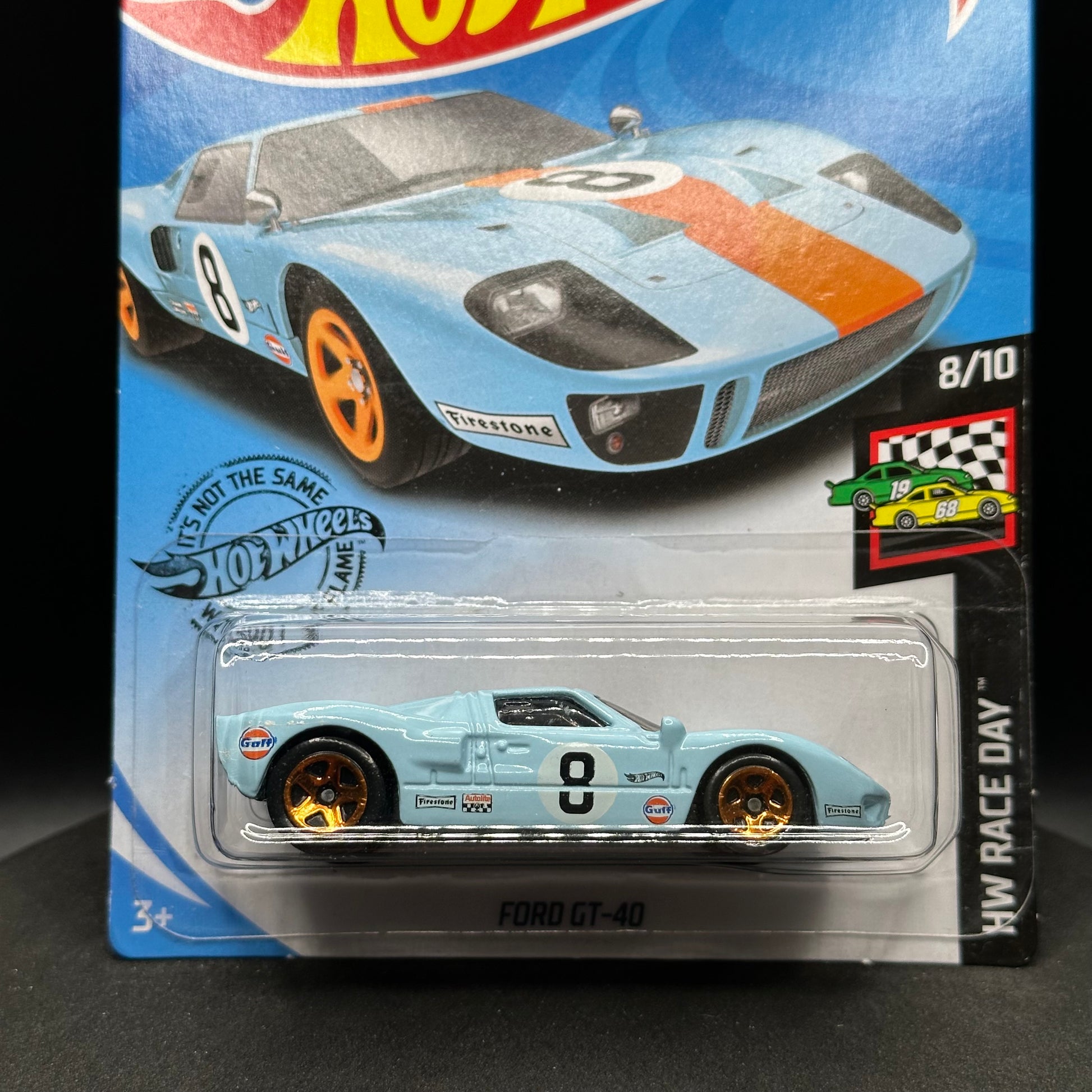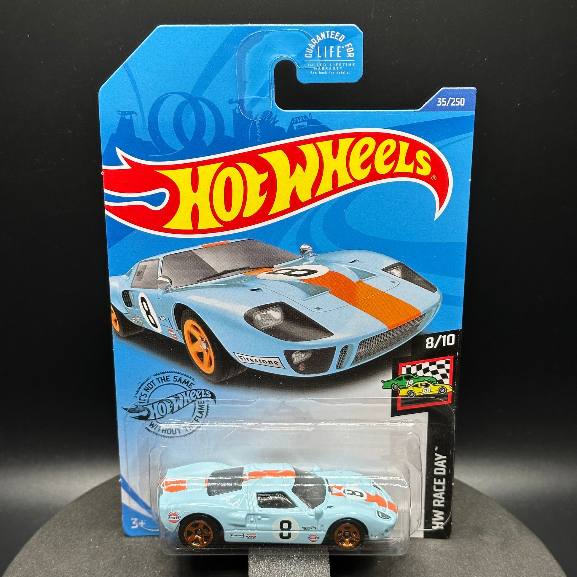 Hot Wheels Gulf Ford GT40. There are multiple available and you might not get the exact one in the picture. They are all in good condition but may have slightly soft corners or lightly dented edges. All Hot Wheels will be individually wrapped in bubble wrap and shipped in a box for added protection.