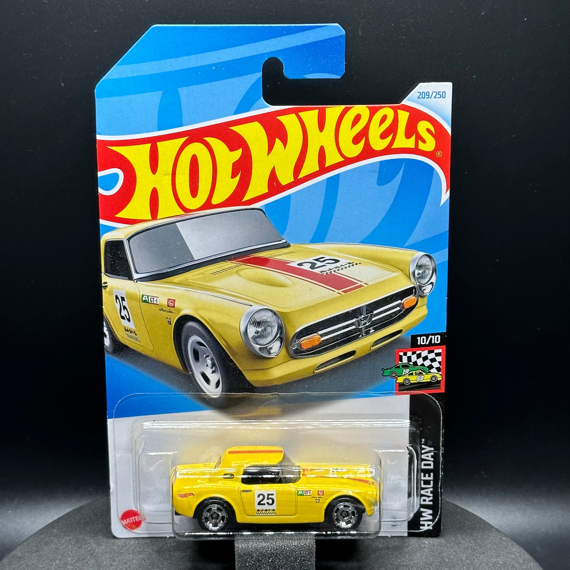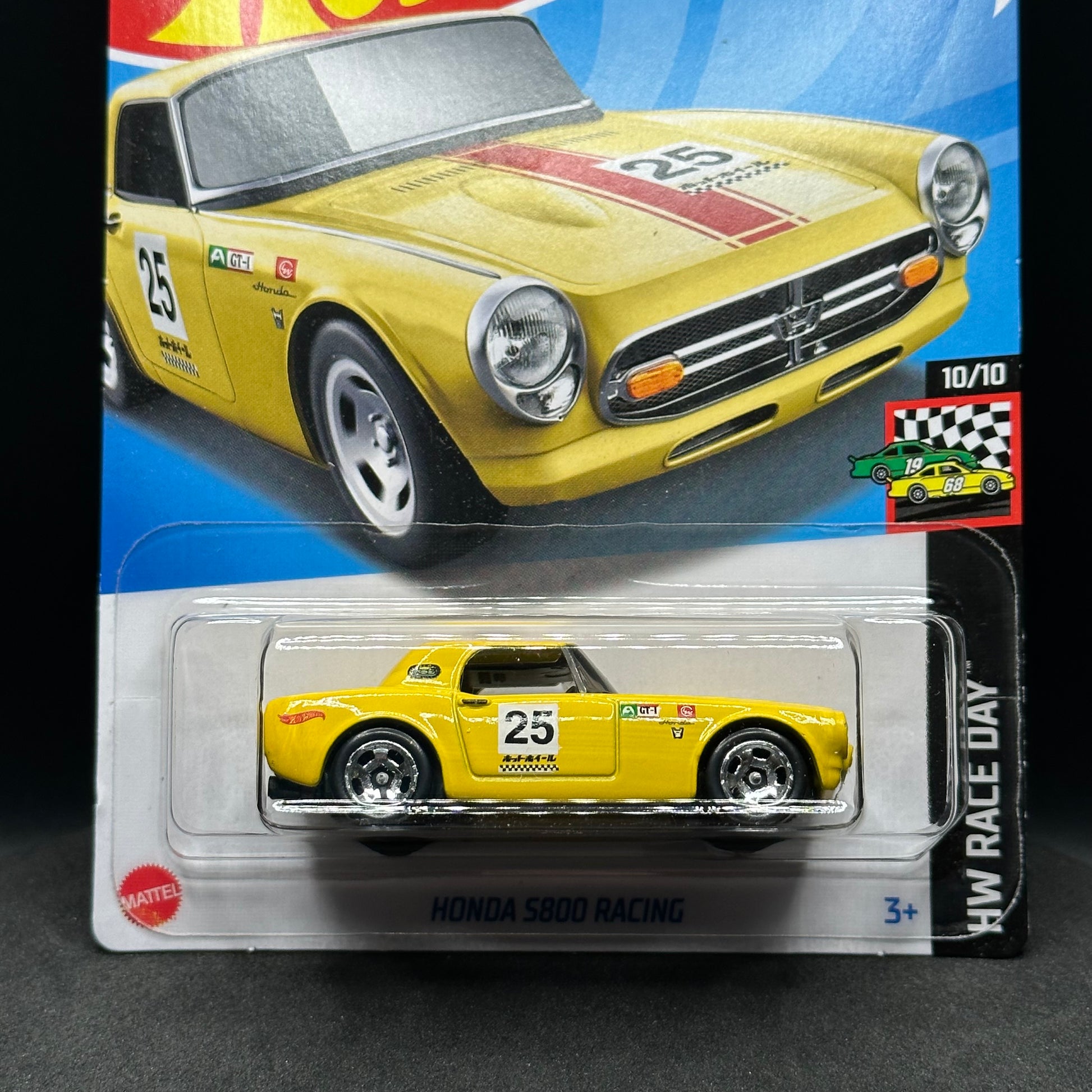 Hot Wheels Honda S800 Racing in yellow. There are multiple available and you might not get the exact one in the picture. They are all in good condition but may have slightly soft corners or lightly dented edges. All Hot Wheels will be individually wrapped in bubble wrap and shipped in a box for added protection.