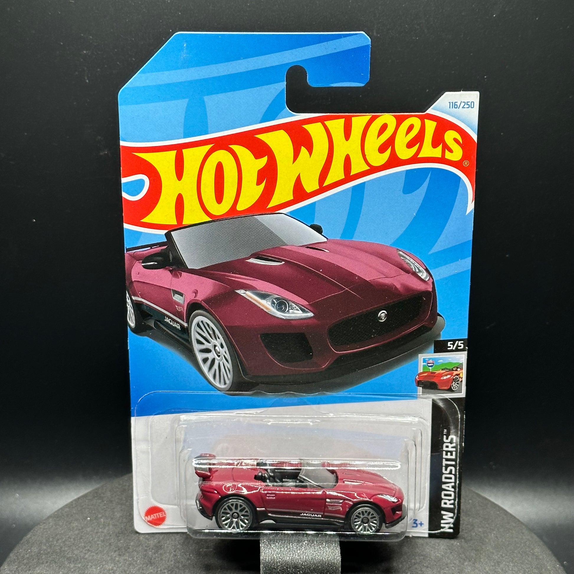 Hot Wheels ‘15 Jaguar F Type Project 7 in maroon. There are multiple available and you might not get the exact one in the picture. They are all in good condition but may have slightly soft corners or lightly dented edges. All Hot Wheels will be individually wrapped in bubble wrap and shipped in a box for added protection.