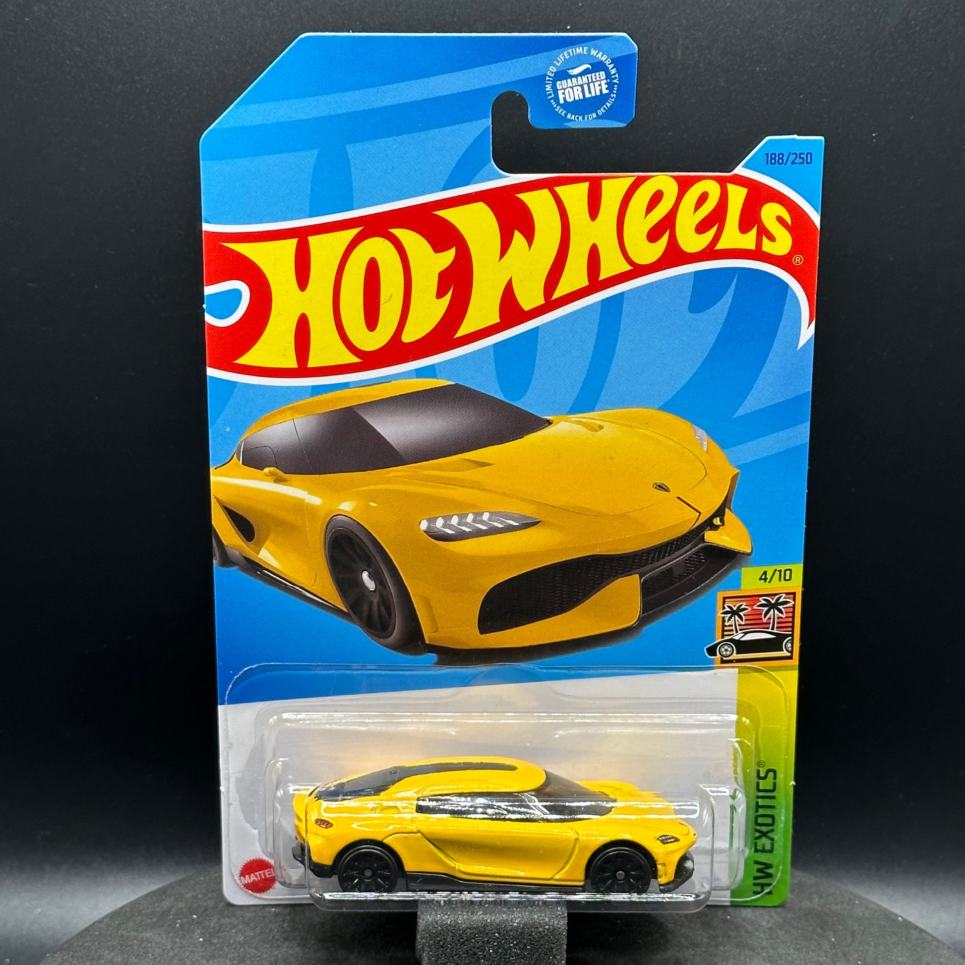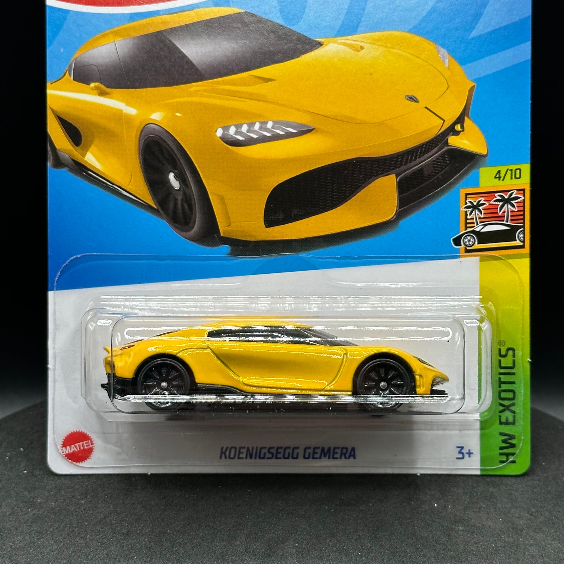 Hot Wheels Koenigsegg Gemera in yellow. There are multiple available and you might not get the exact one in the picture. They are all in good condition but may have slightly soft corners or lightly dented edges. All Hot Wheels will be individually wrapped in bubble wrap and shipped in a box for added protection.