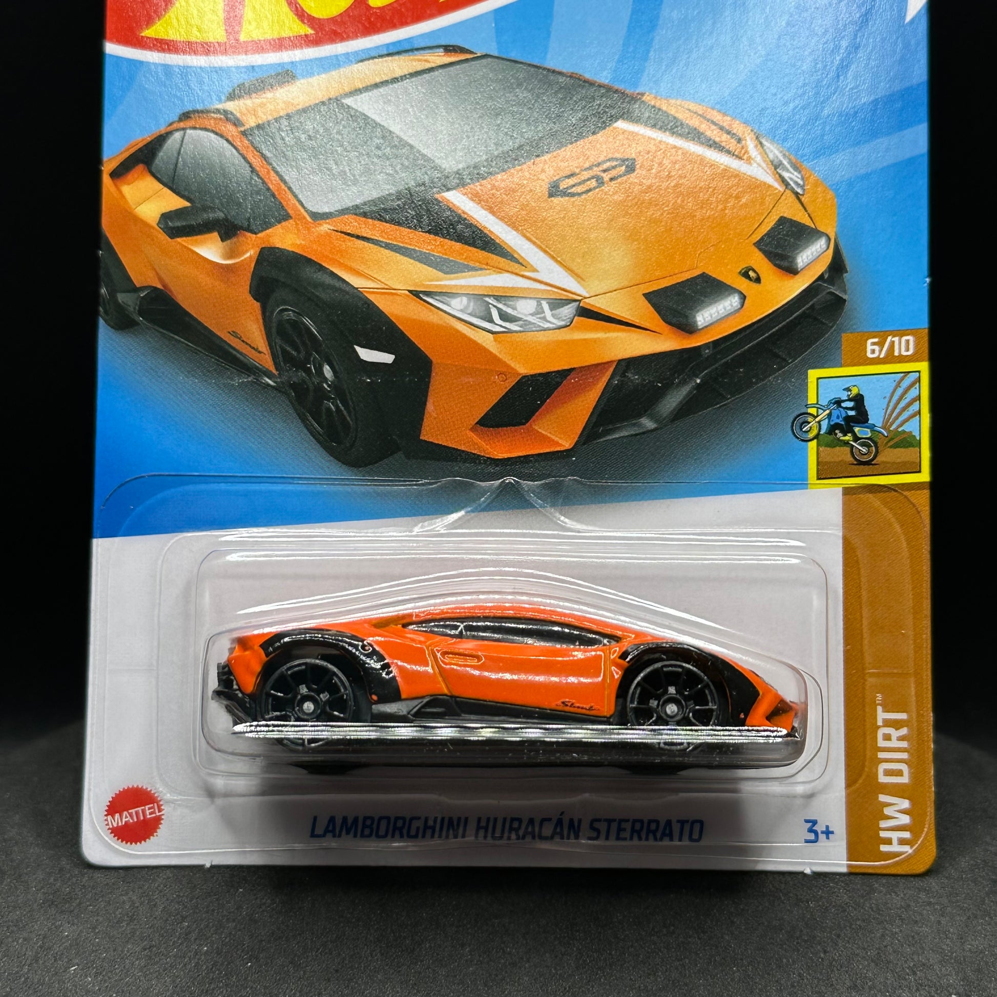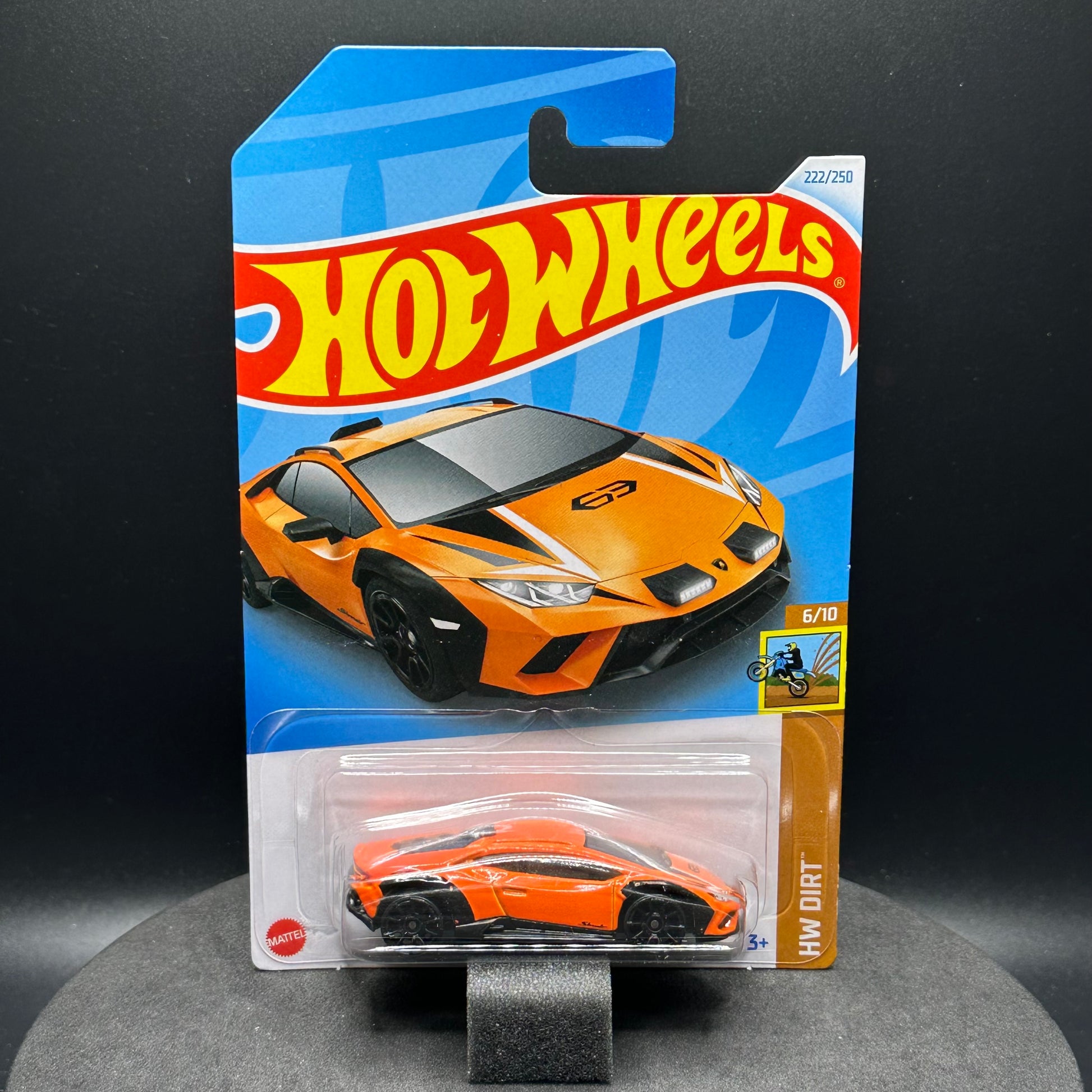 Hot Wheels Lamborghini Huracan Sterrato in orange. There are multiple available and you might not get the exact one in the picture. They are all in good condition but may have slightly soft corners or lightly dented edges. All Hot Wheels will be individually wrapped in bubble wrap and shipped in a box for added protection.
