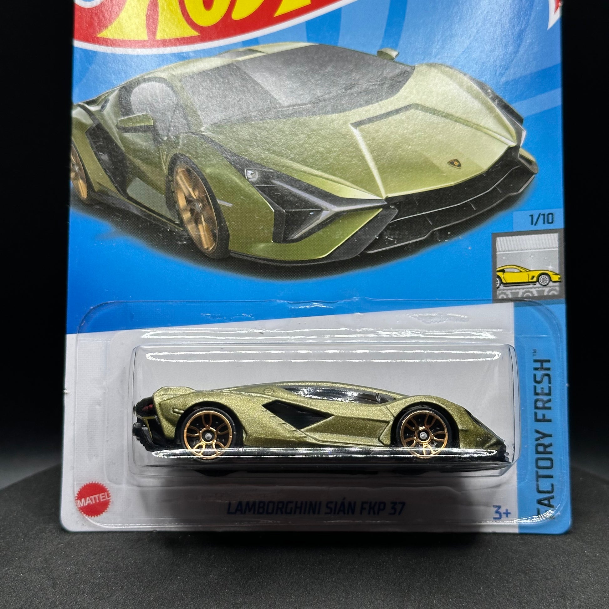 Hot Wheels Lamborghini Sian in matte green. There are multiple available and you might not get the exact one in the picture. They are all in good condition but may have slightly soft corners or lightly dented edges. All Hot Wheels will be individually wrapped in bubble wrap and shipped in a box for added protection.