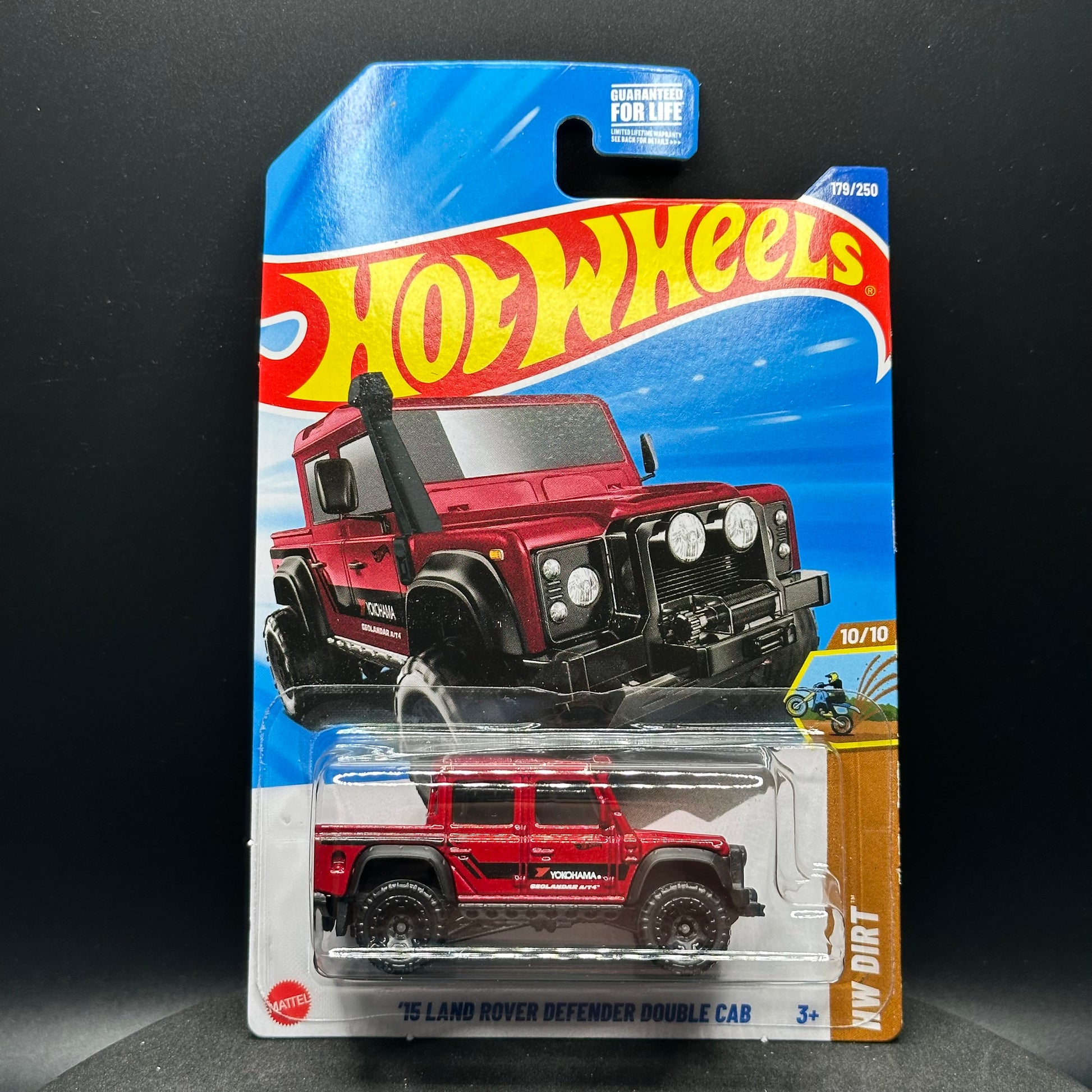 Hot Wheels ‘15 Land Rover Defender Double Cab in red. There are multiple available and you might not get the exact one in the picture. They are all in good condition but may have slightly soft corners or lightly dented edges. All Hot Wheels will be individually wrapped in bubble wrap and shipped in a box for added protection.