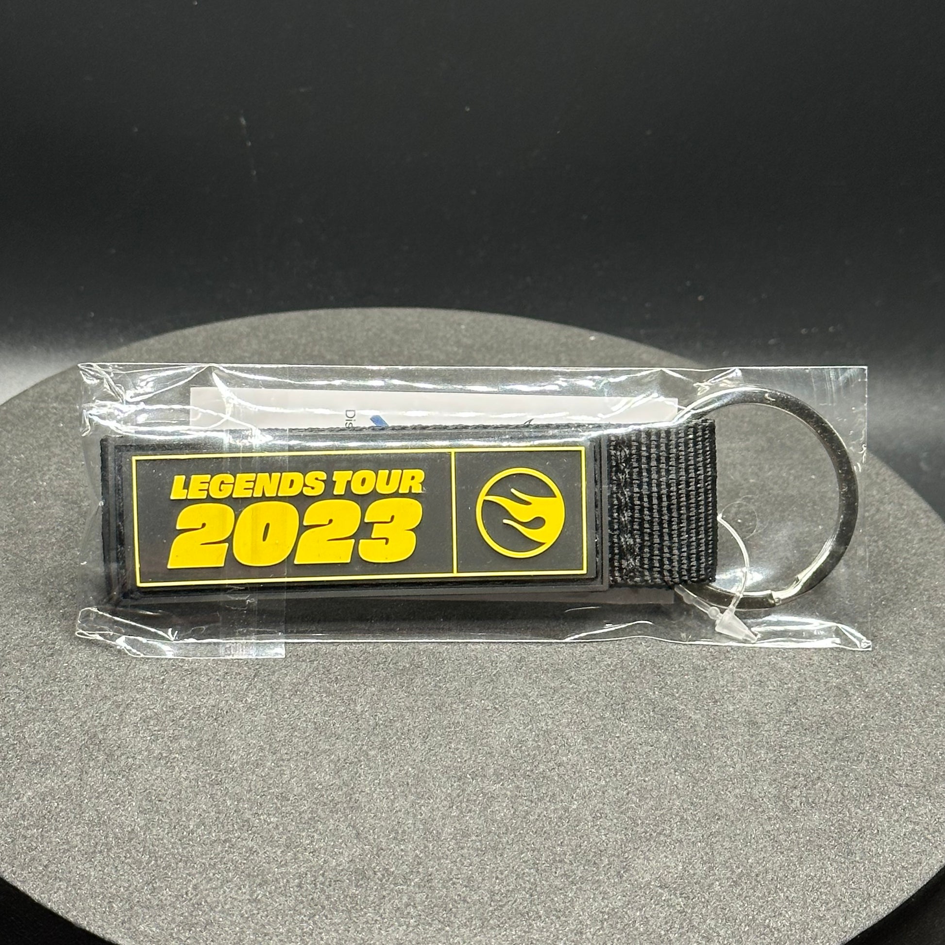 Hot Wheels Legends Tour 2023 Keychain. Text on one side and Hot Wheels logo on the reverse.