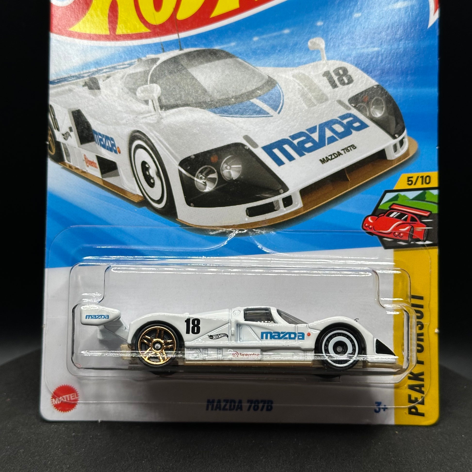 Hot Wheels Mazda 787 B in white. There are multiple available and you might not get the exact one in the picture. They are all in good condition but may have slightly soft corners or lightly dented edges. All Hot Wheels will be individually wrapped in bubble wrap and shipped in a box for added protection.