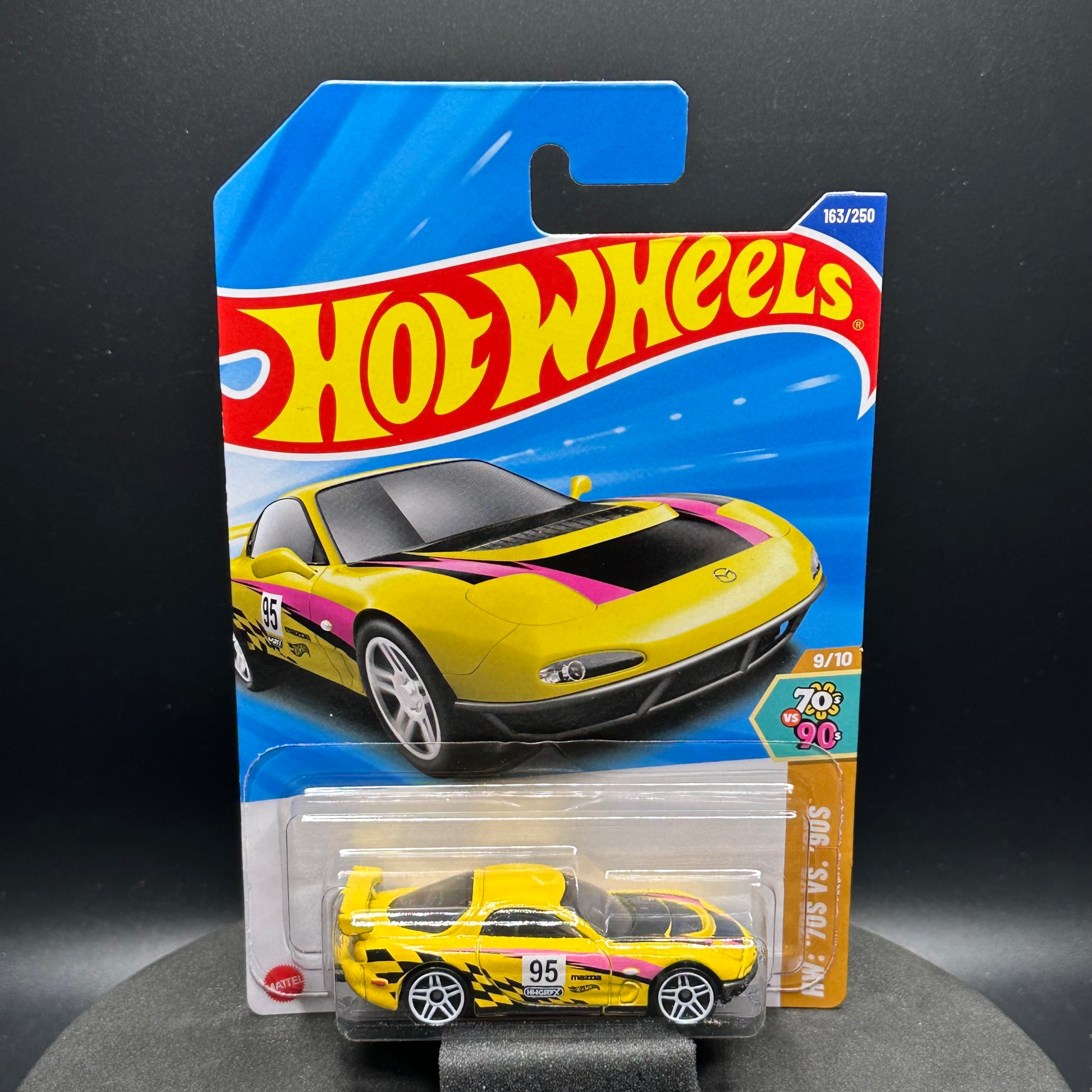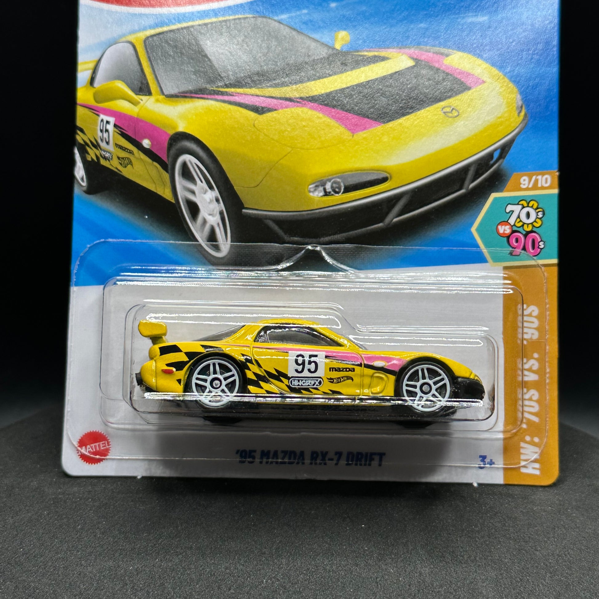 Hot Wheels ‘95 Mazda RX7 Drift in yellow. There are multiple available and you might not get the exact one in the picture. They are all in good condition but may have slightly soft corners or lightly dented edges. All Hot Wheels will be individually wrapped in bubble wrap and shipped in a box for added protection.