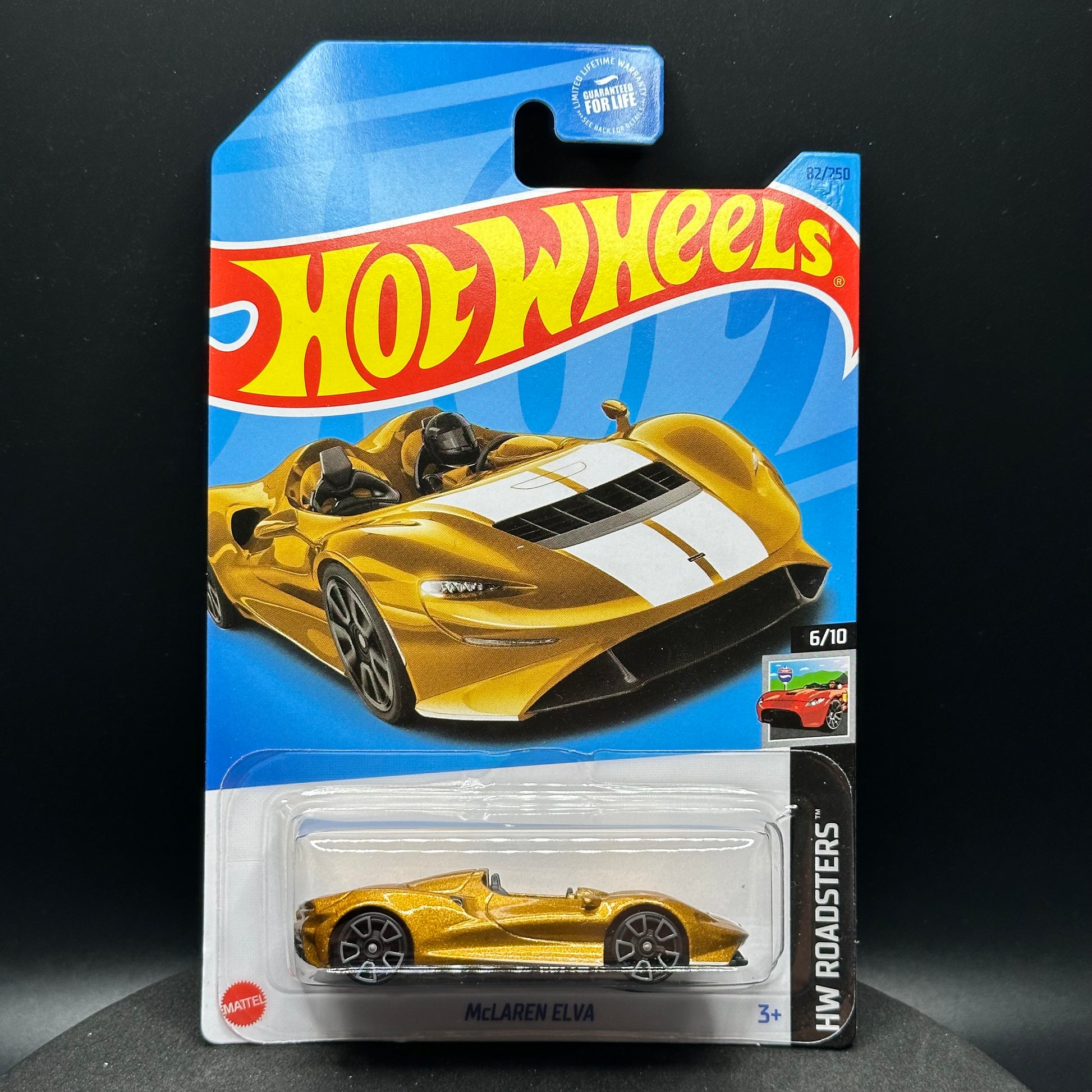 Hot Wheels McLaren Elva in gold. There are multiple available and you might not get the exact one in the picture. They are all in good condition but may have slightly soft corners or lightly dented edges. All Hot Wheels will be individually wrapped in bubble wrap and shipped in a box for added protection.