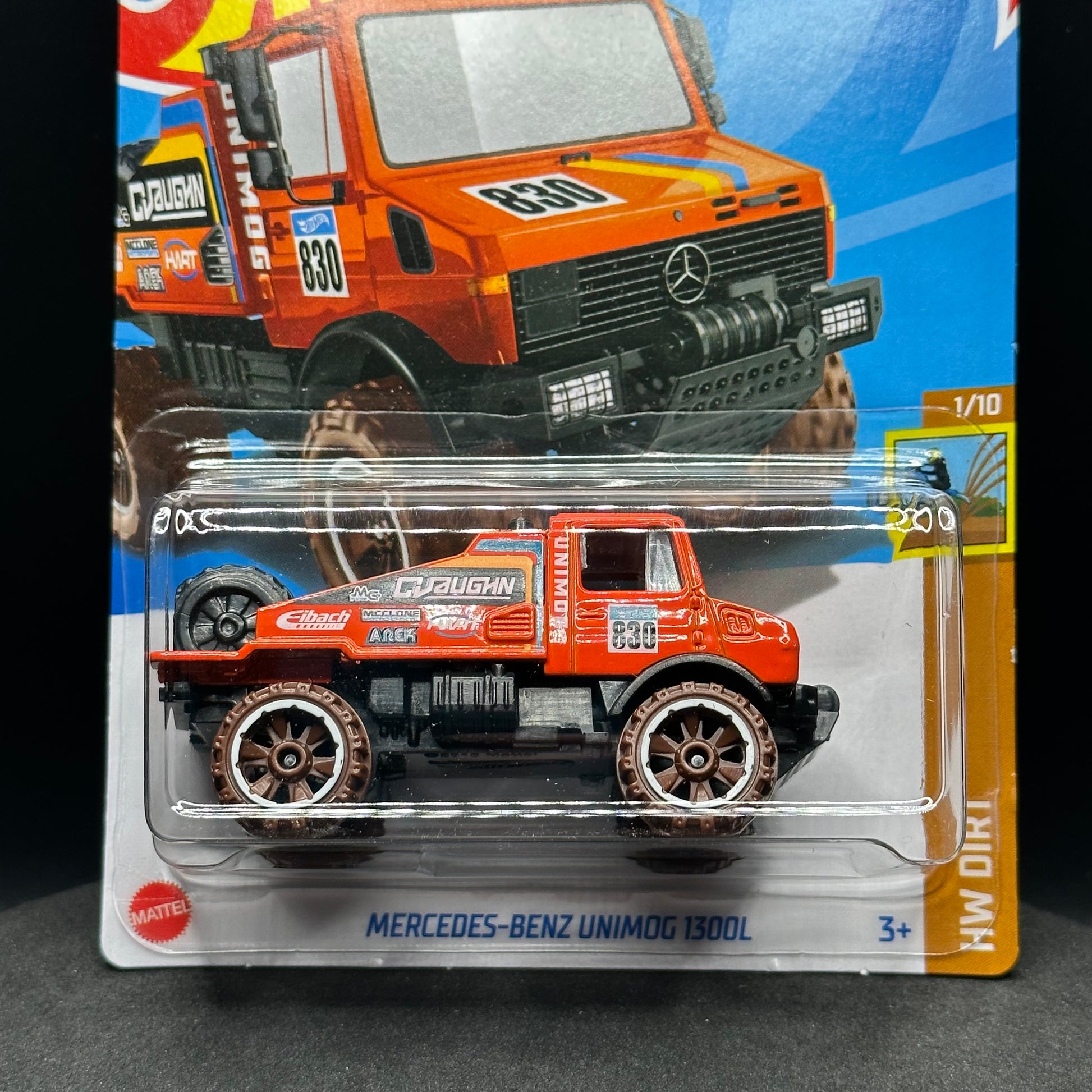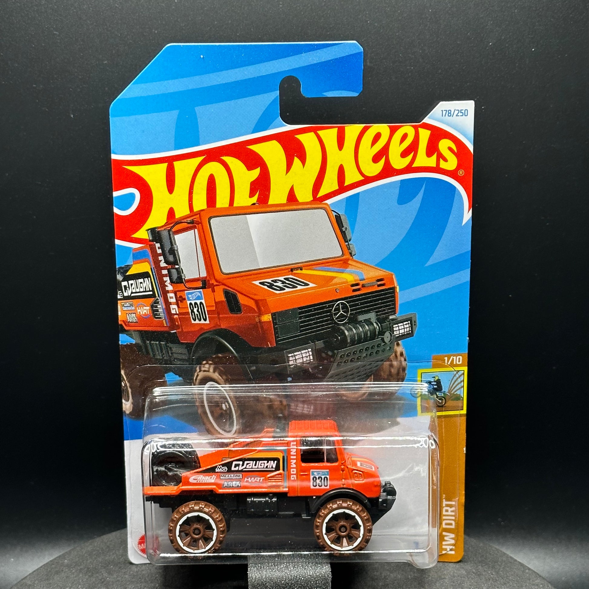 Hot Wheels Mercedes Benz Unimog 1300L in orange. There are multiple available and you might not get the exact one in the picture. They are all in good condition but may have slightly soft corners or lightly dented edges. All Hot Wheels will be individually wrapped in bubble wrap and shipped in a box for added protection.