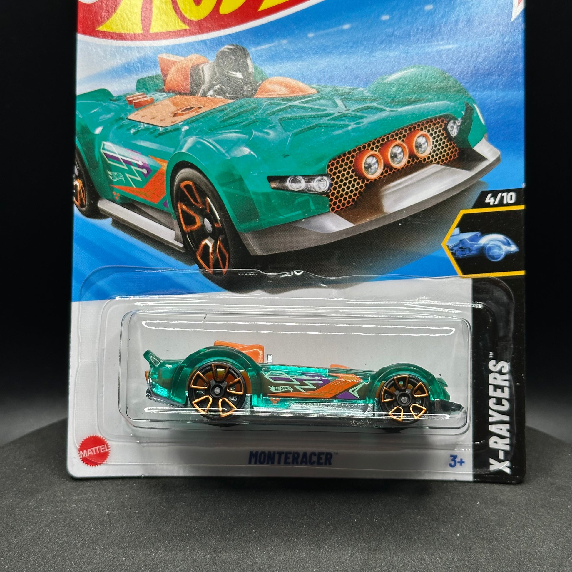 Hot Wheels Monteracer in green. There are multiple available and you might not get the exact one in the picture. They are all in good condition but may have slightly soft corners or lightly dented edges. All Hot Wheels will be individually wrapped in bubble wrap and shipped in a box for added protection.