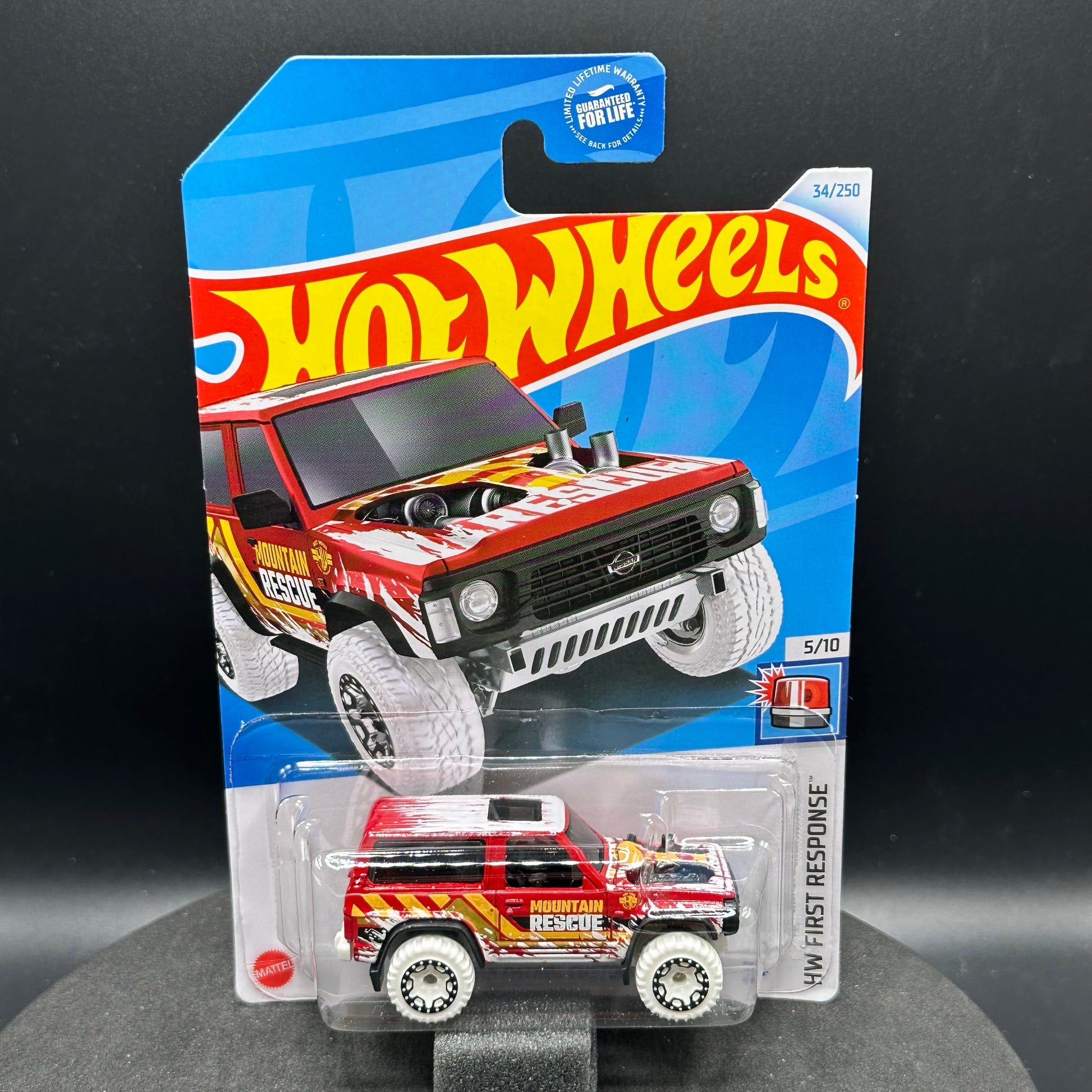 Hot Wheels Nissan Patrol Custom in red with white tires. There are multiple available and you might not get the exact one in the picture. They are all in good condition. All Hot Wheels will be wrapped in bubble wrap and shipped in a box for added protection.